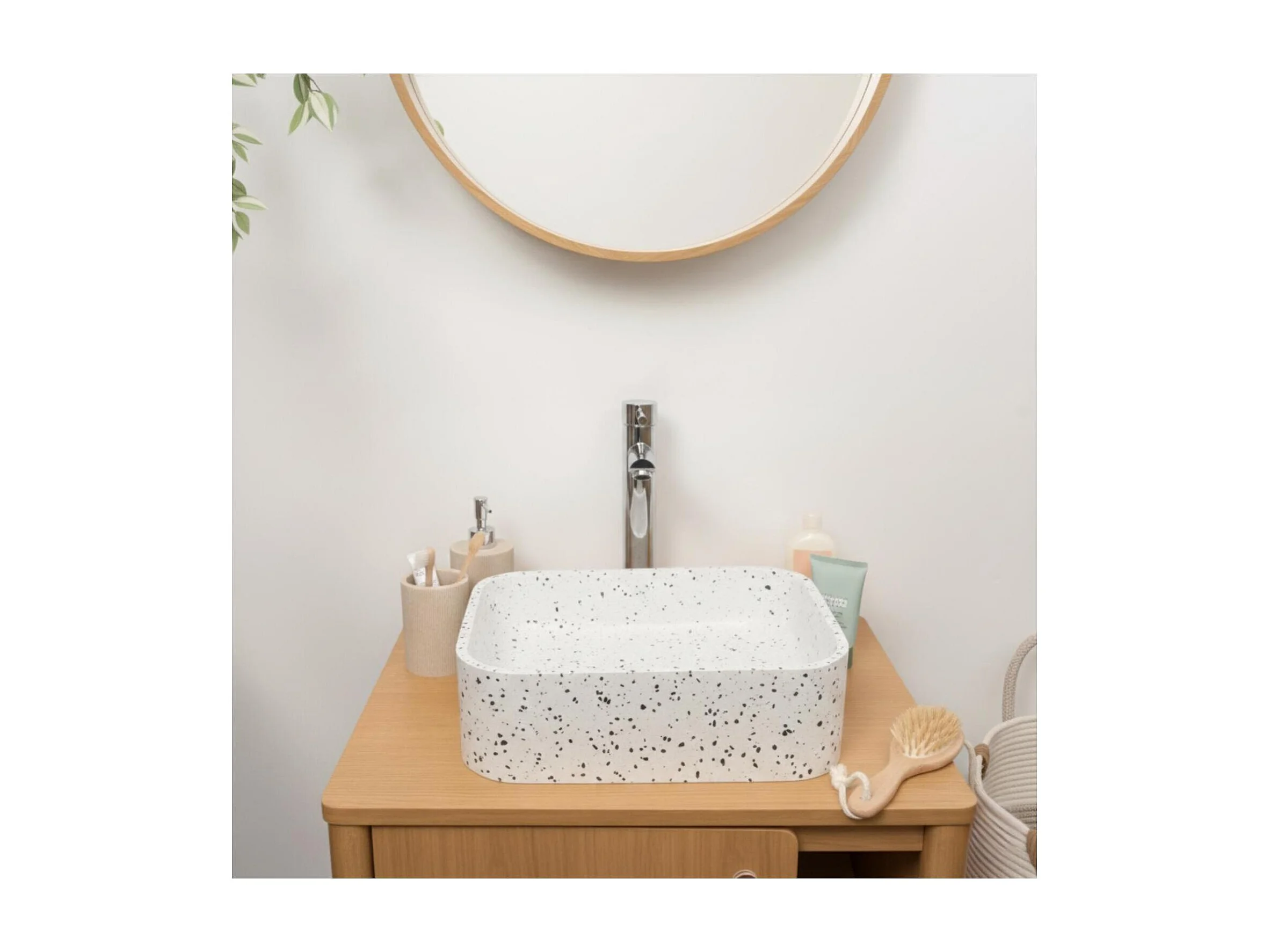 Vasque à poser rectangle en terrazzo blanc 45x38cm