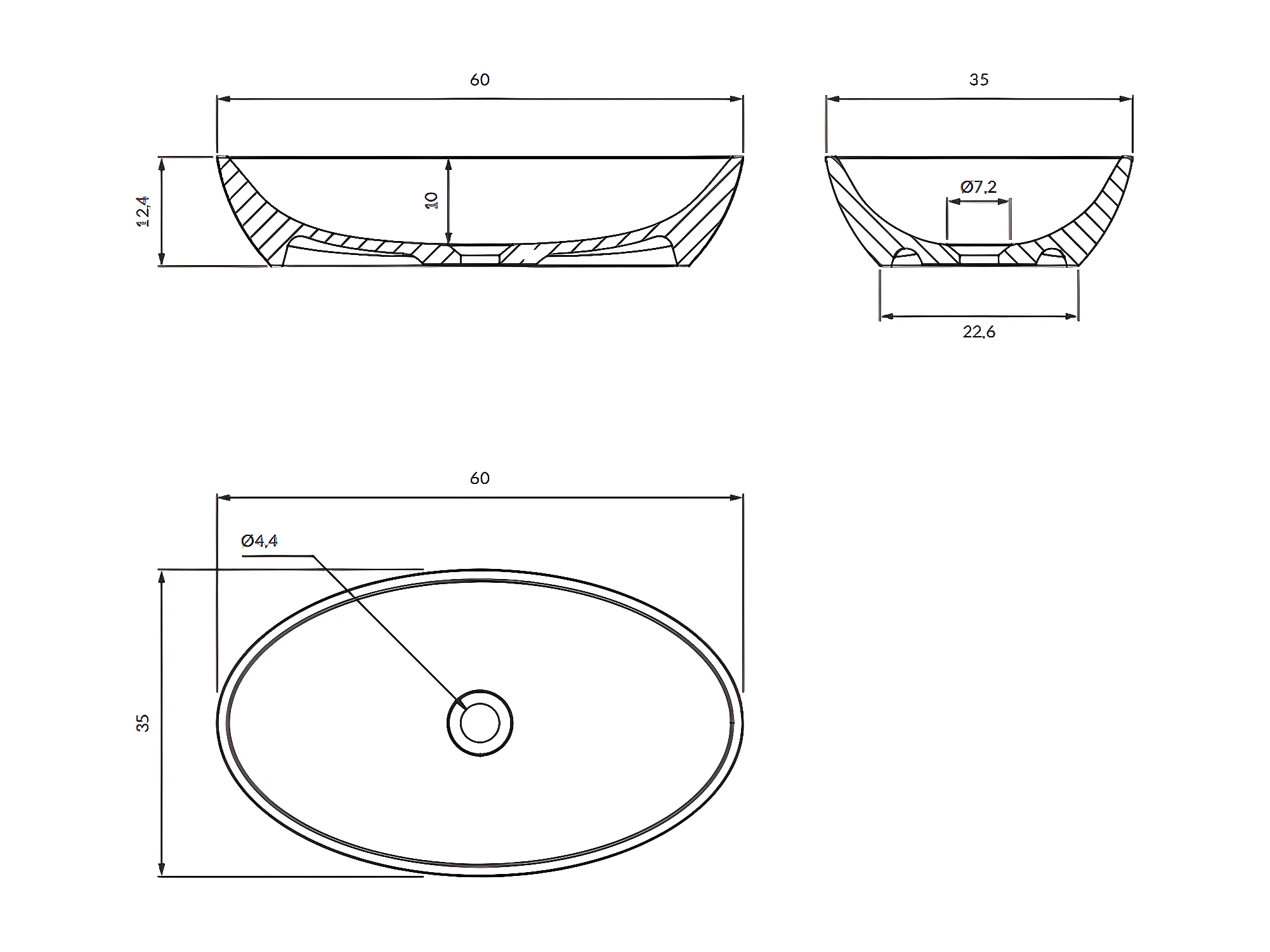 Vasque à poser SIENA GRIS 60 x 35 cm blanc- gris brillant bonde de vidage blanche incluse