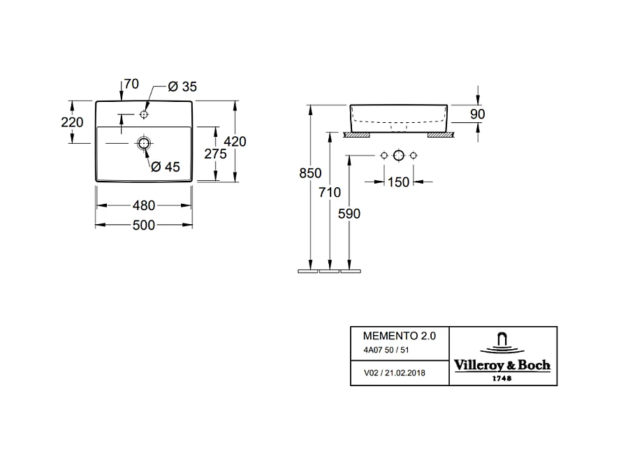 Vasque à poser VILLEROY ET BOCH Memento 2.0 blanc 50 x 42 cm