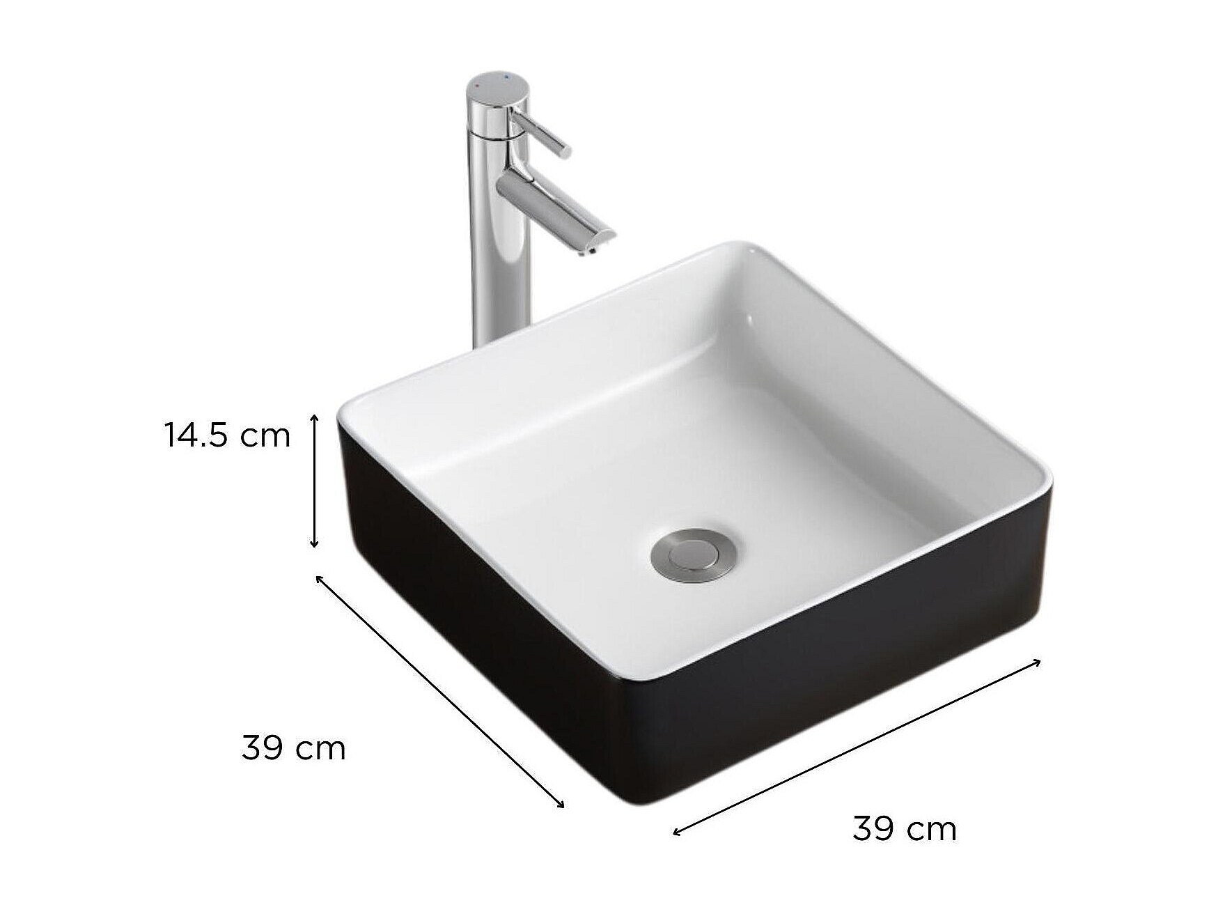 Vasque à poser carrée en céramique bicolore noir et blanc 36cm