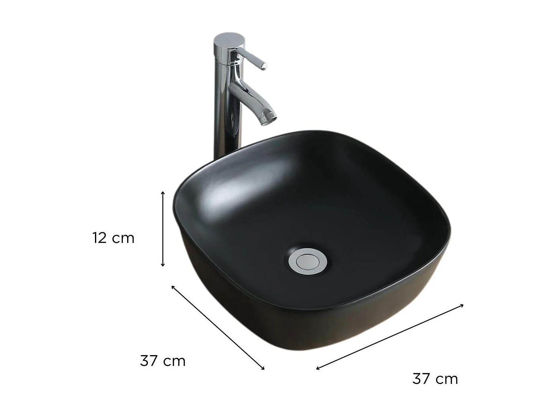 Vasque à poser carrée en céramique noire 36,5cm