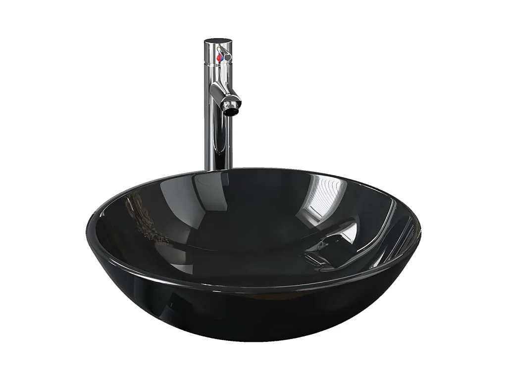 Vasque de bain avec robinet et drain à poussoir Verre trempé WVGQ8536