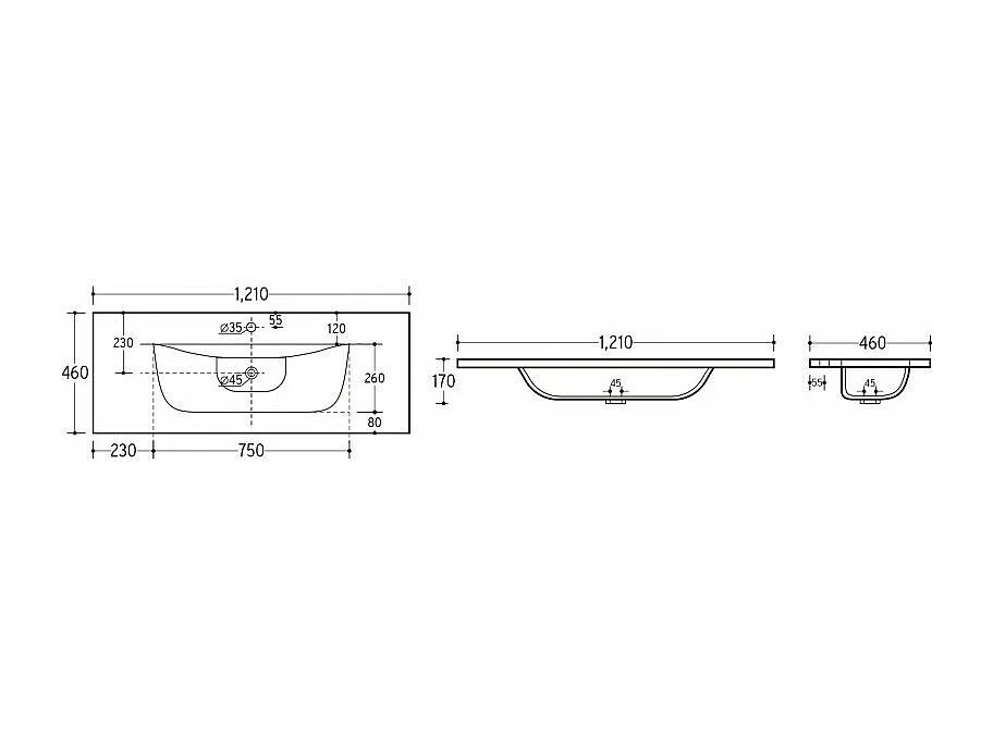 Vasque en céramique à encastrer - Blanc - L 121 x P 46 x H 17 cm