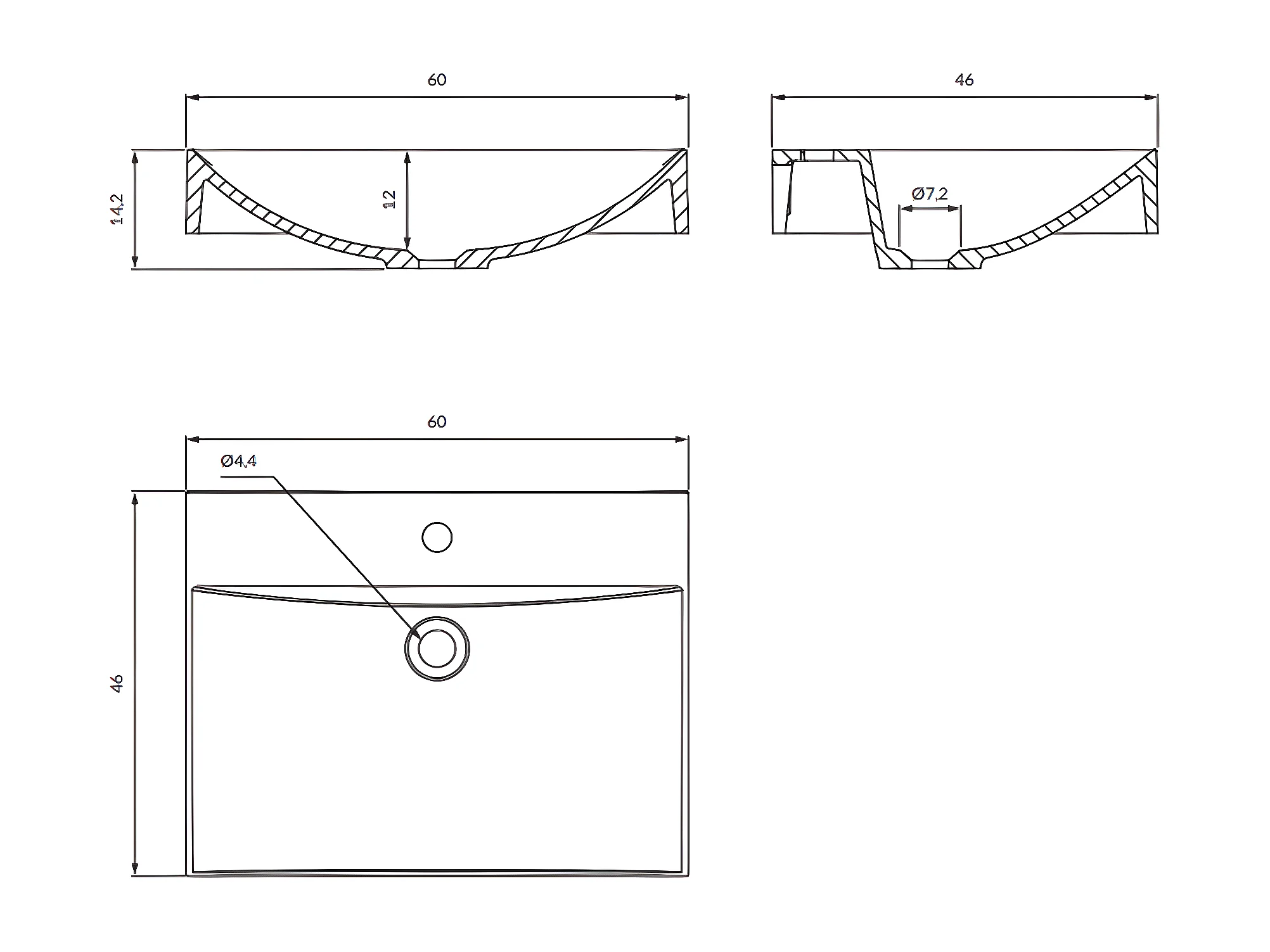 Vasque murale ou à poser NAXOS 60 x 46 cm blanc brillant bonde de vidage incluse