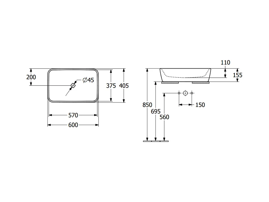 Vasque rectangle à poser VILLEROY ET BOCH Architectura Blanc CeramicPlus 60 x 40,5 sans trop-plein