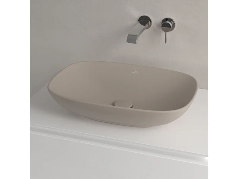 Vasque rectangle à poser VILLEROY ET BOCH Loop and Friends non meulé 56 x 38 Almond CeramicPlus sans trop plein