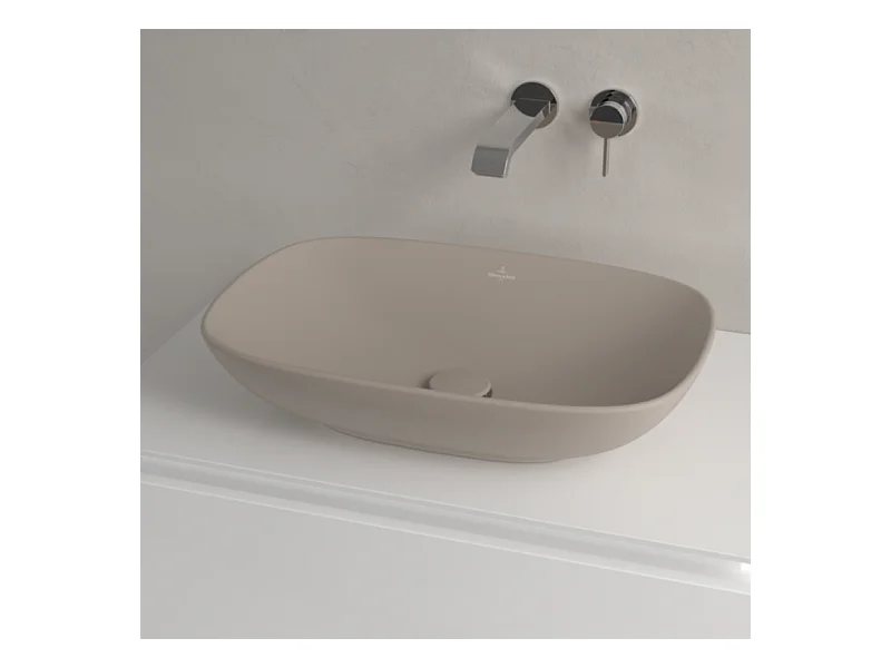 Vasque rectangle à poser VILLEROY ET BOCH Loop and Friends non meulé 62 x 42 Almond CeramicPlus sans trop plein