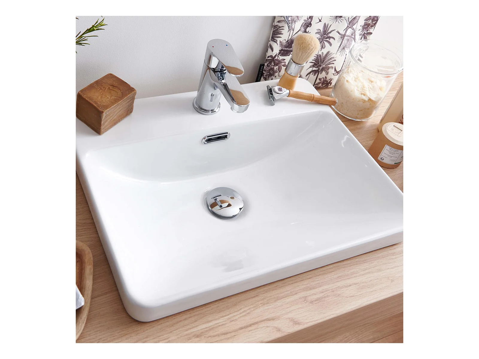 Vasque à encastrer rectangulaire 53x37cm + robinet et bonde chromés