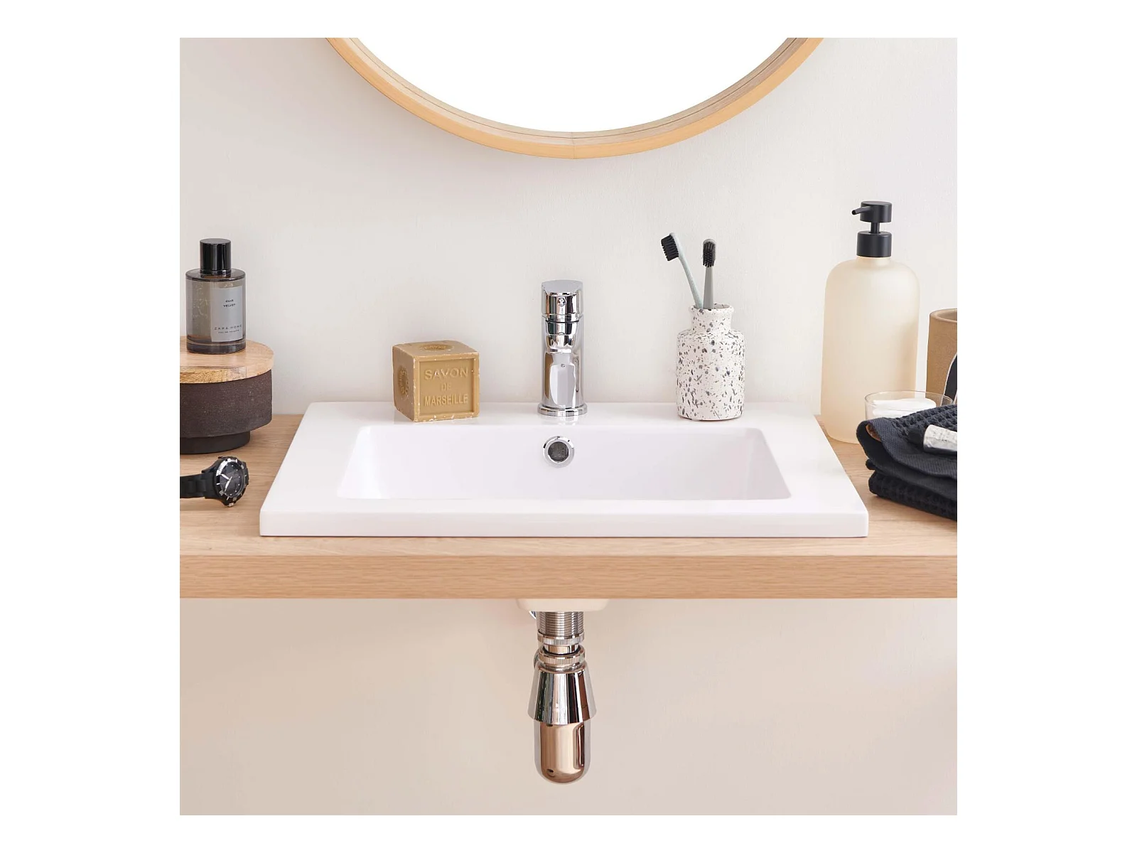 Vasque à encastrer rectangulaire 50x43cm + robinet et bonde chromés