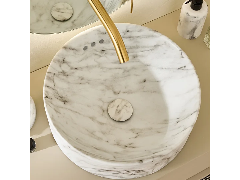 Vasque ronde à poser JACOB DELAFON Vox marbre blanc sculptural + bonde