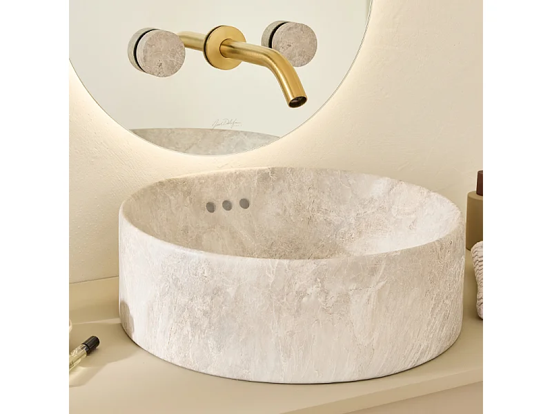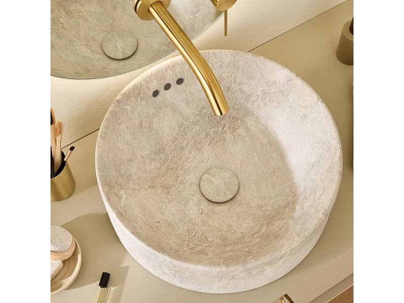 Vasque ronde à poser JACOB DELAFON Vox marbre travertin sable + bonde