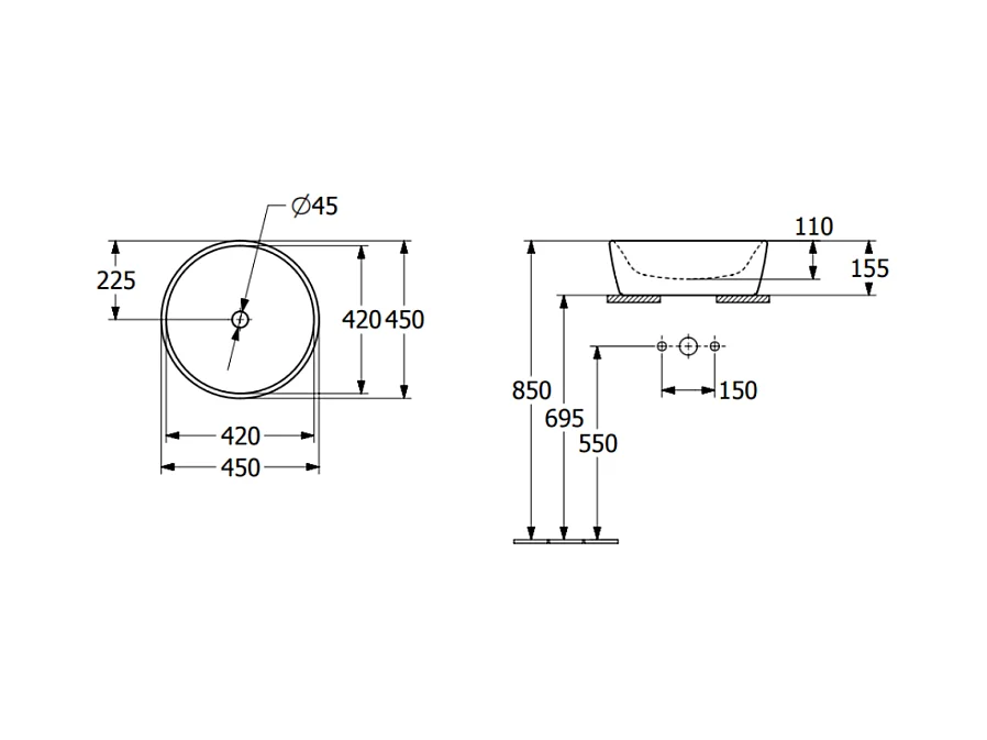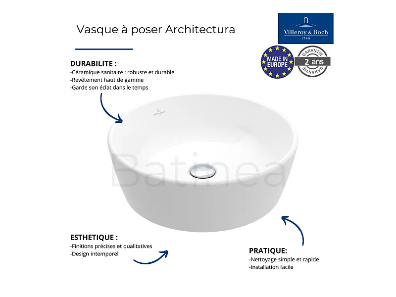 Vasque ronde à poser VILLEROY ET BOCH Architectura 45 x 45 sans trop plein