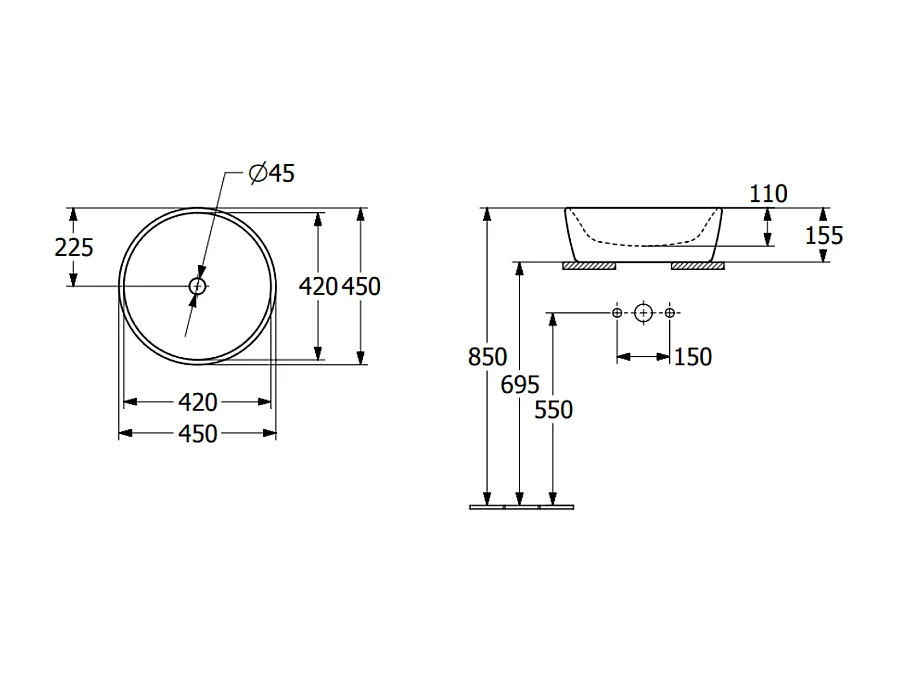 Vasque ronde à poser VILLEROY ET BOCH Architectura Blanc CeramicPlus 45 x 45 sans trop plein