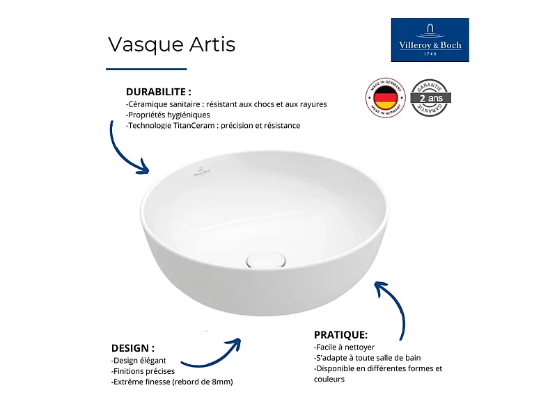 Vasque ronde à poser VILLEROY ET BOCH Artis Stone White CeramicPlus