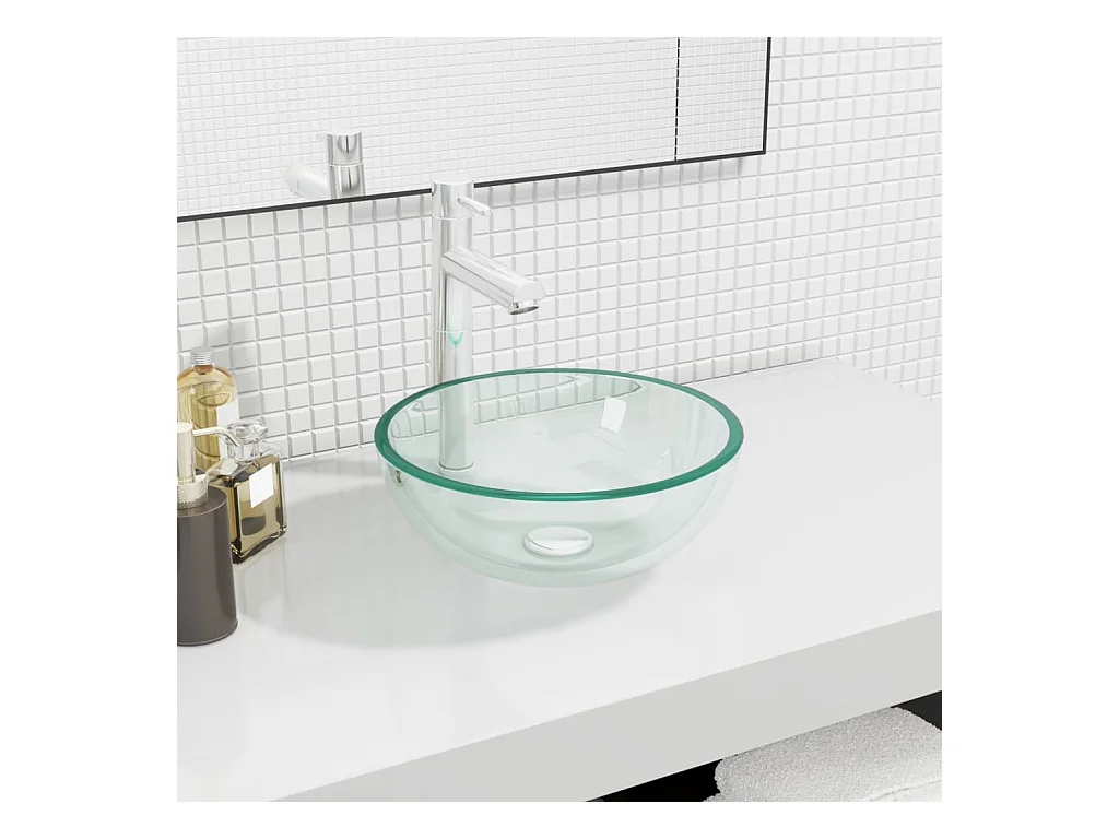 Vasque de bain avec robinet et drain à poussoir Verre trempé FR874894