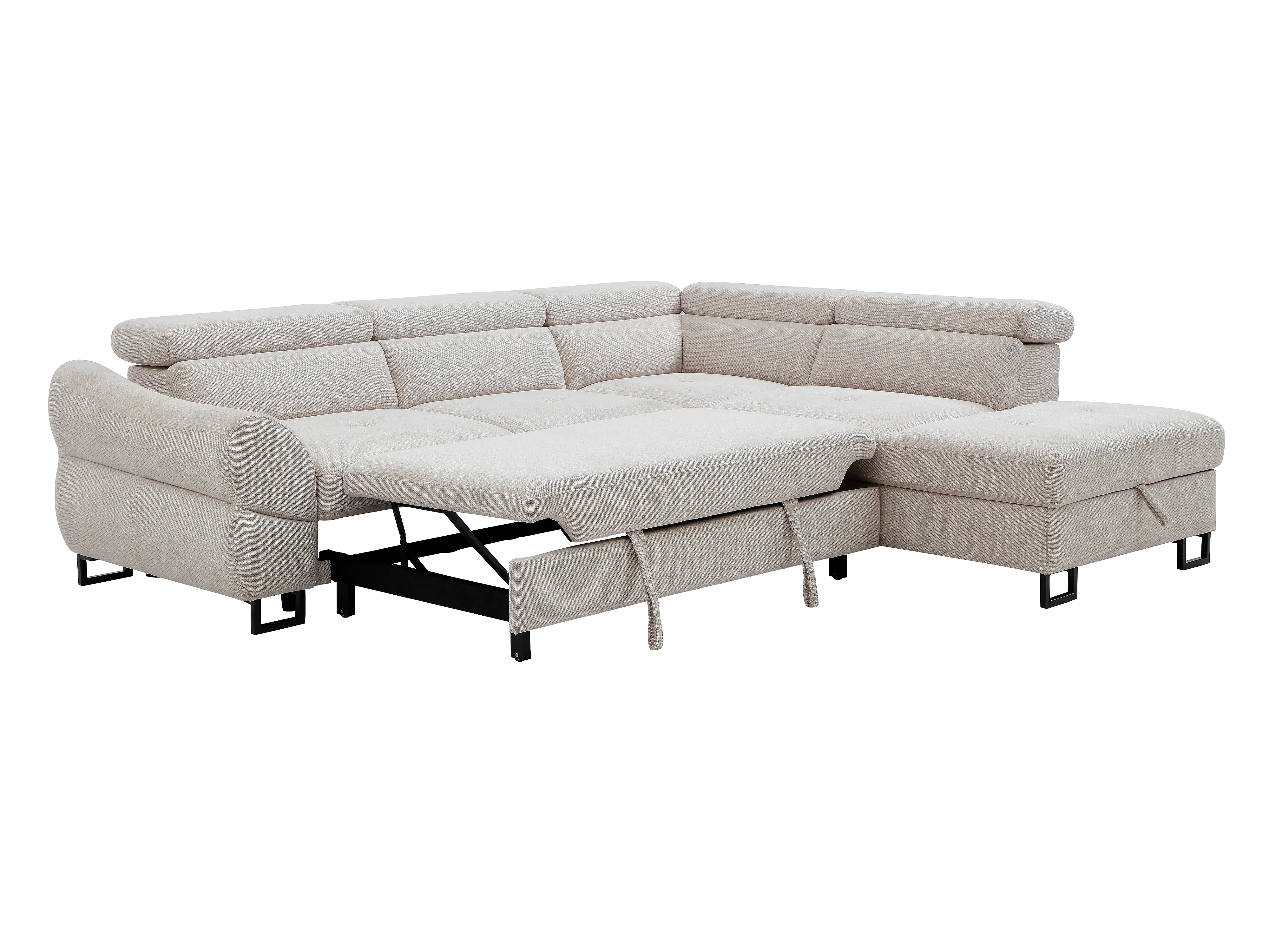 Canapé d'angle droit convertible en tissu texturé beige VAVERDO