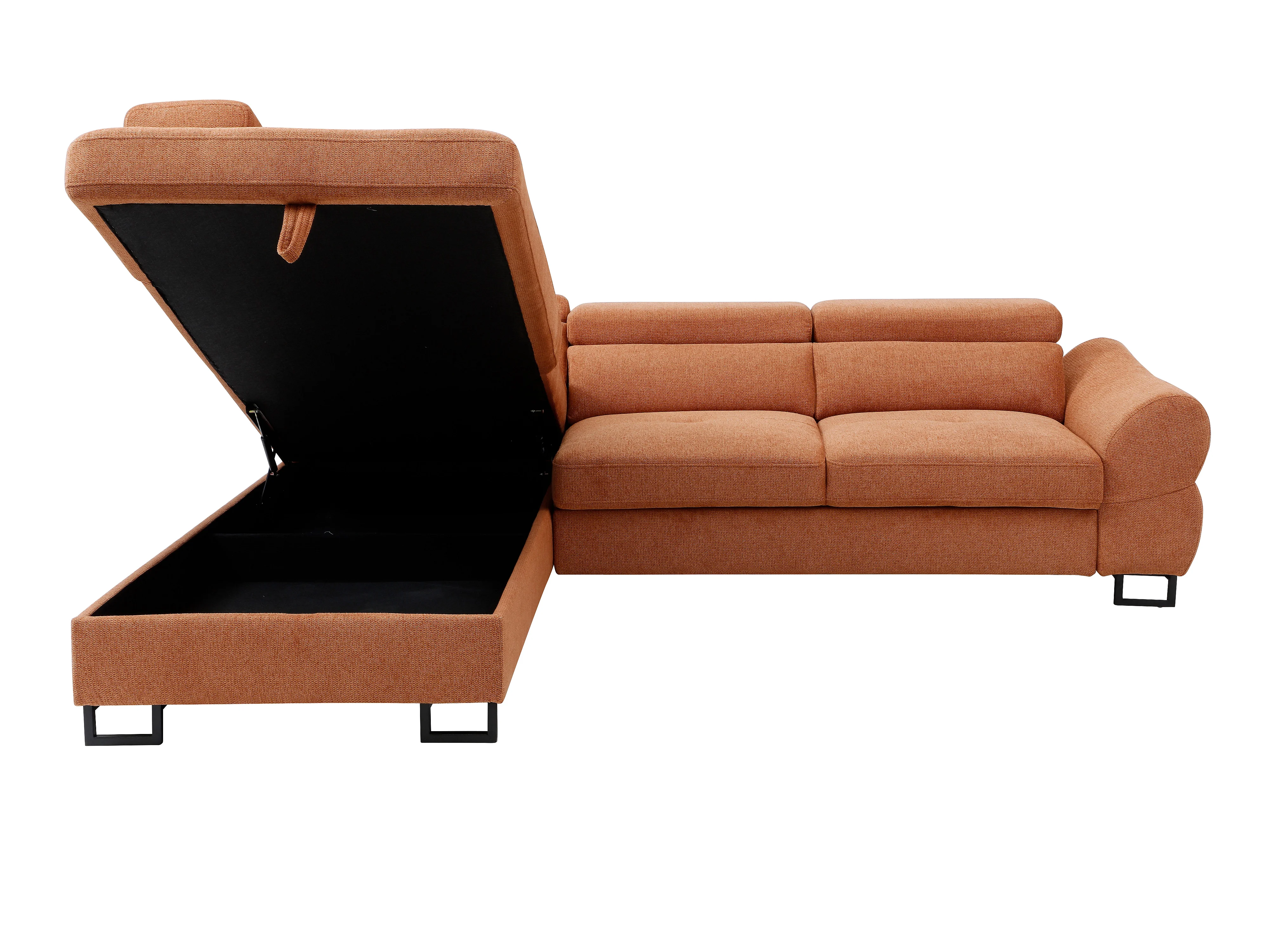 Canapé d'angle gauche convertible en tissu texturé terracotta VAVERDO