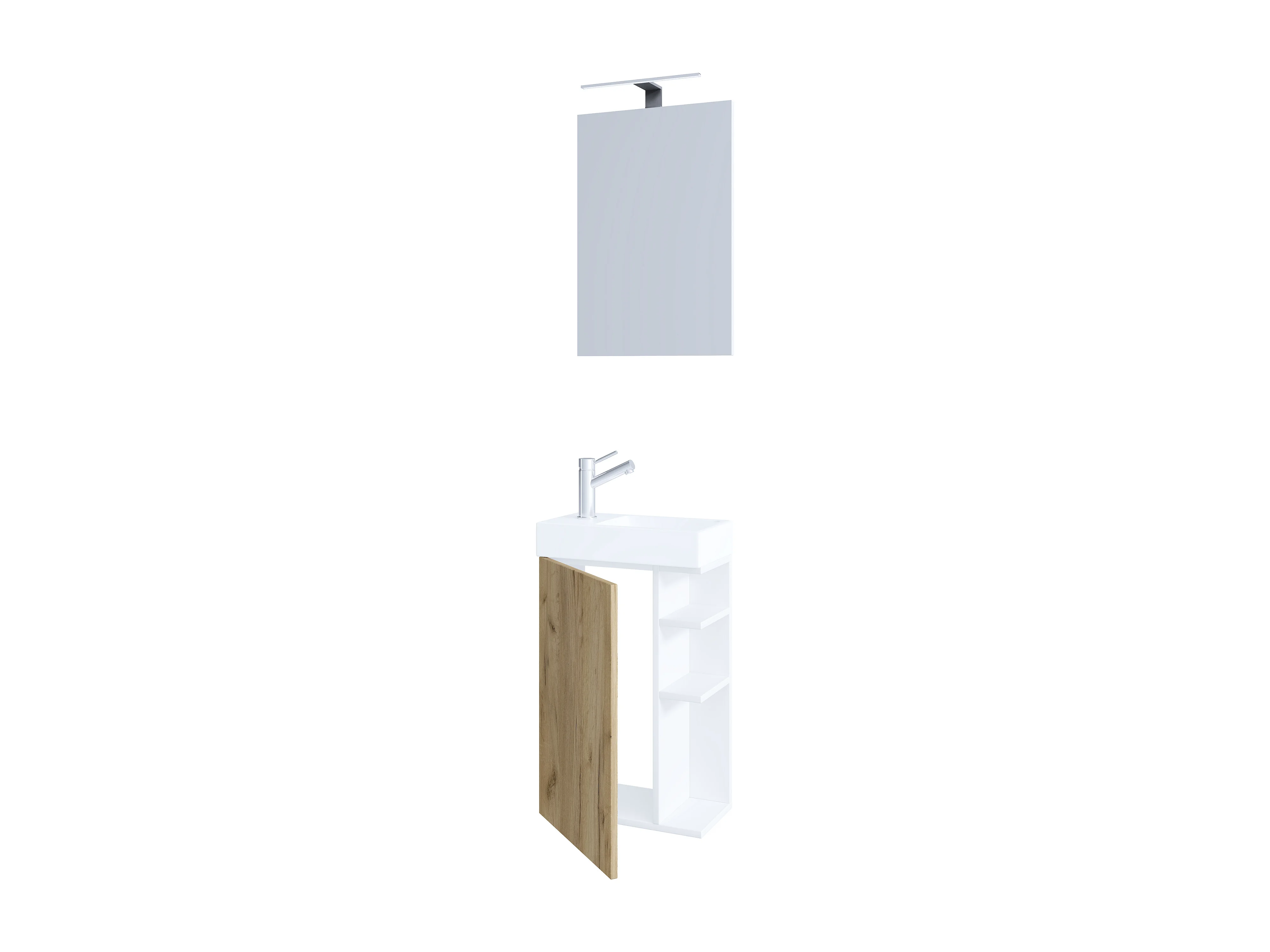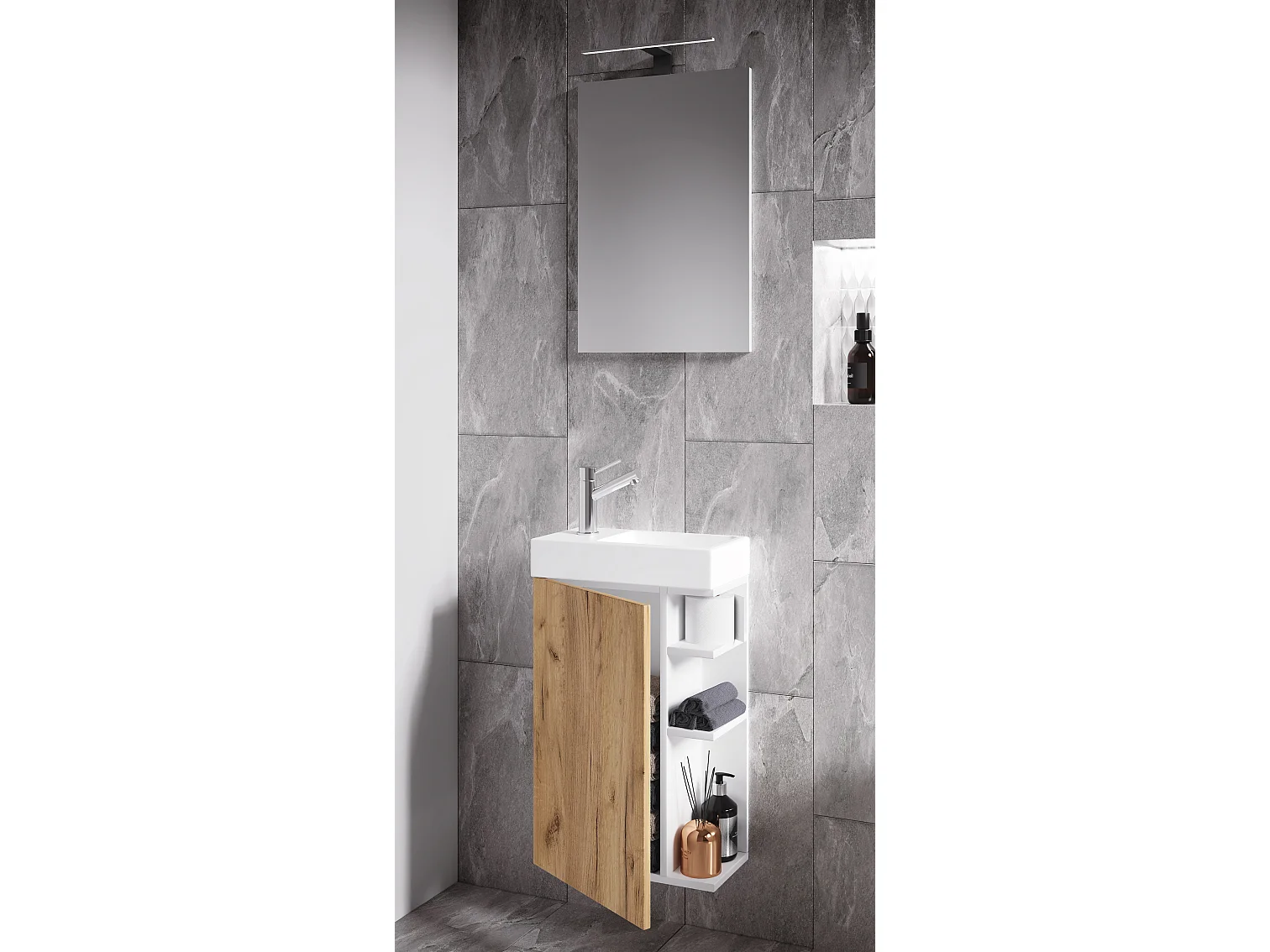 Bathroom furniture washbasin Lumia White / Honey oak H. 129 x W. 40 x D. 22 cm