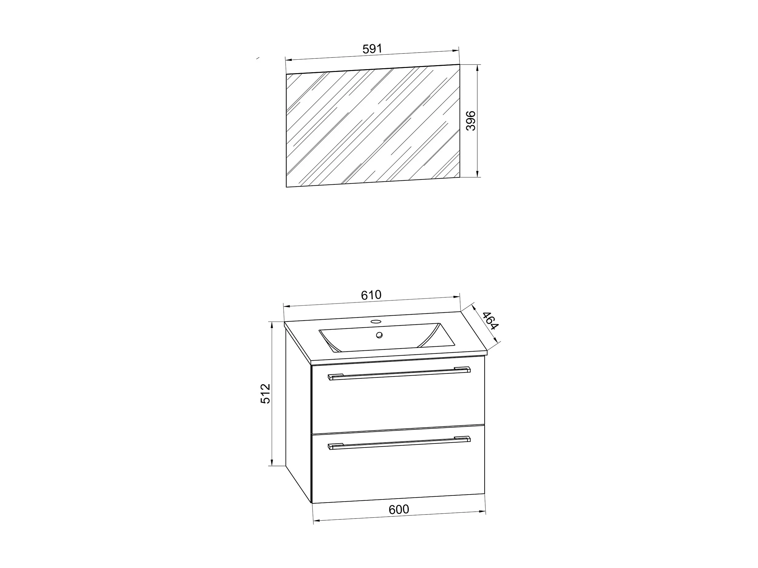 Bathroom furniture washbasin Badinos White H. 92 x W. 60 x D. 46 cm