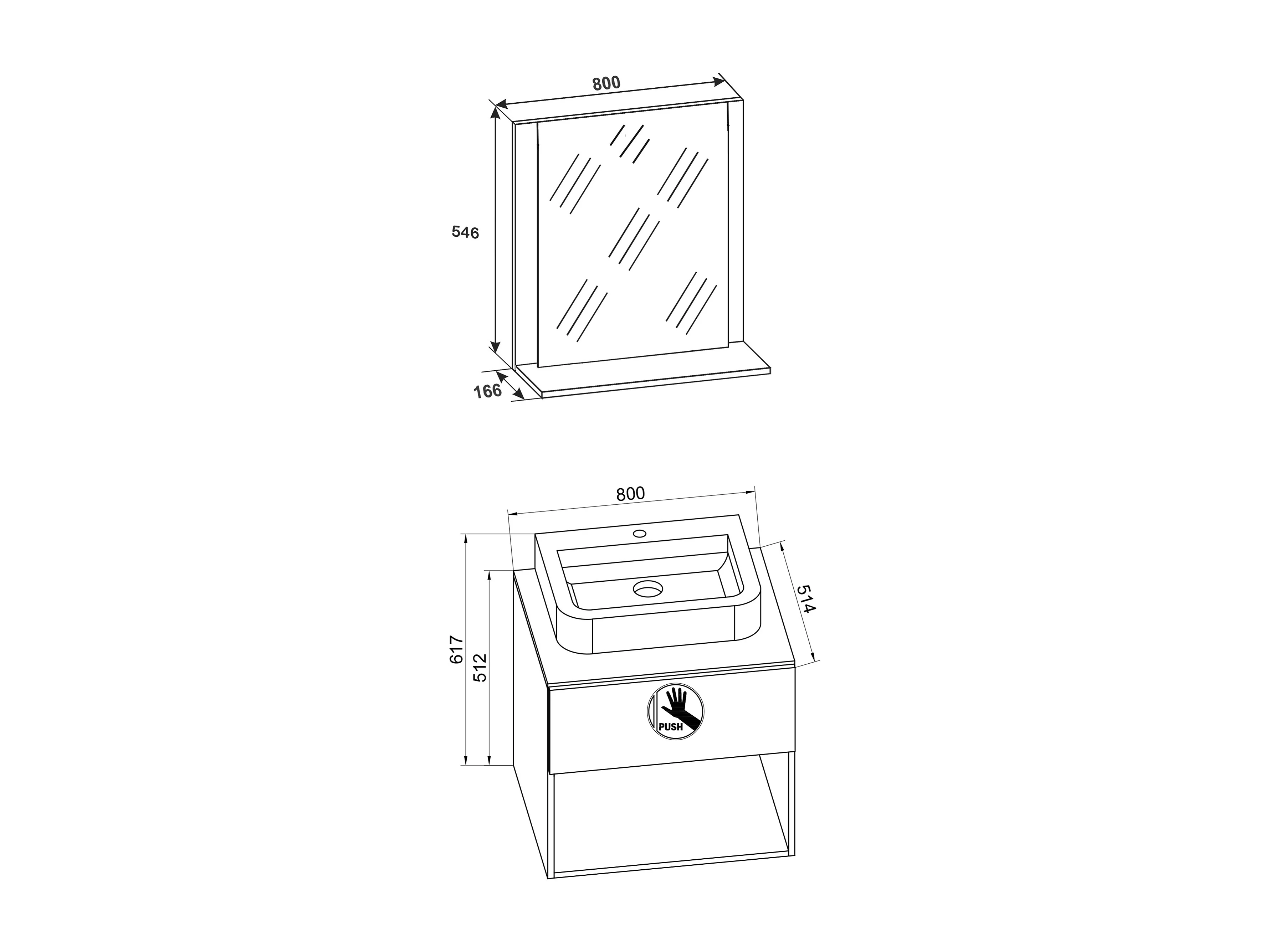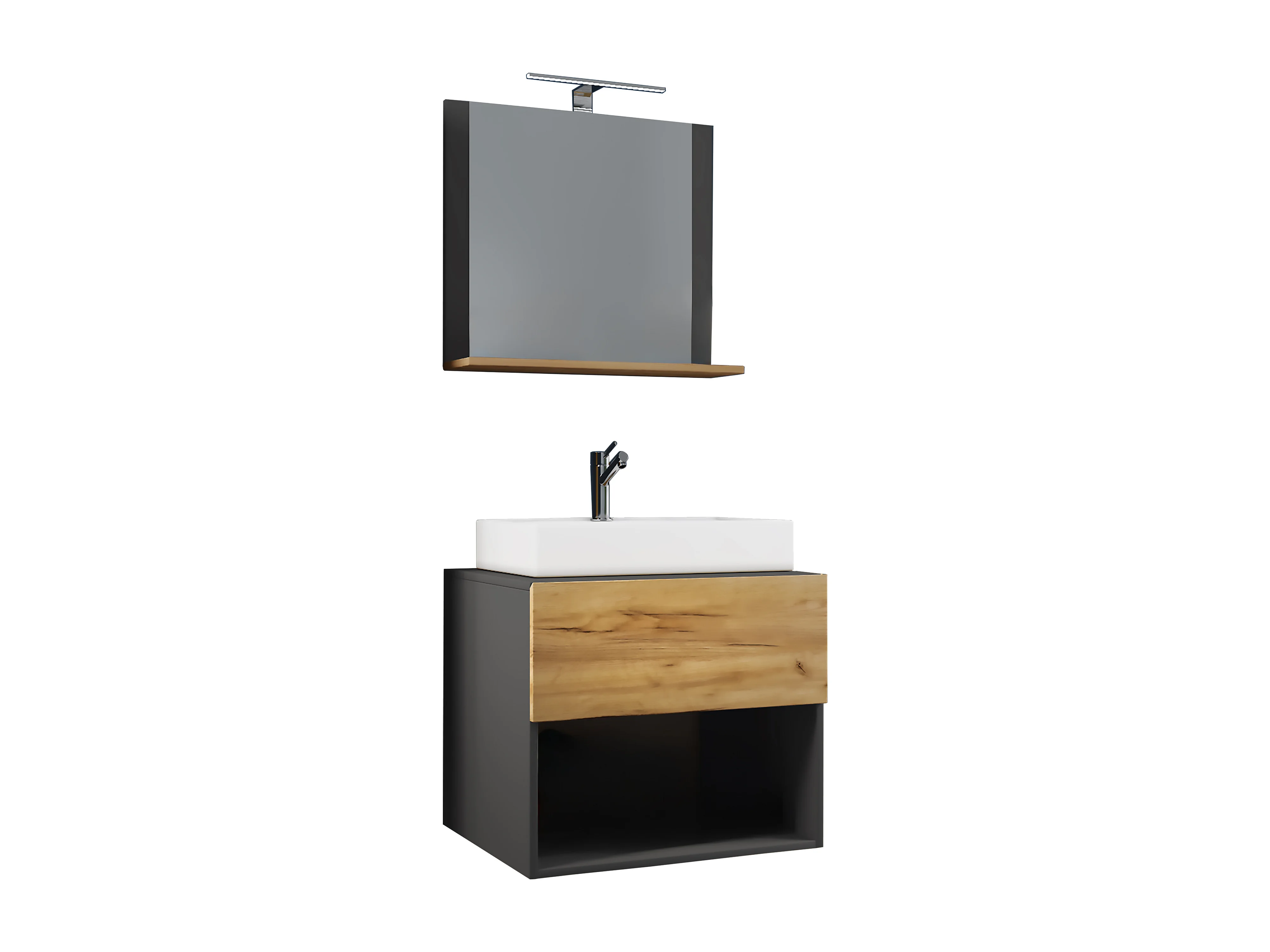 Bathroom furniture washbasin Lendas Anthracite / honey oak H. 107 x W. 80 x D. 52 cm