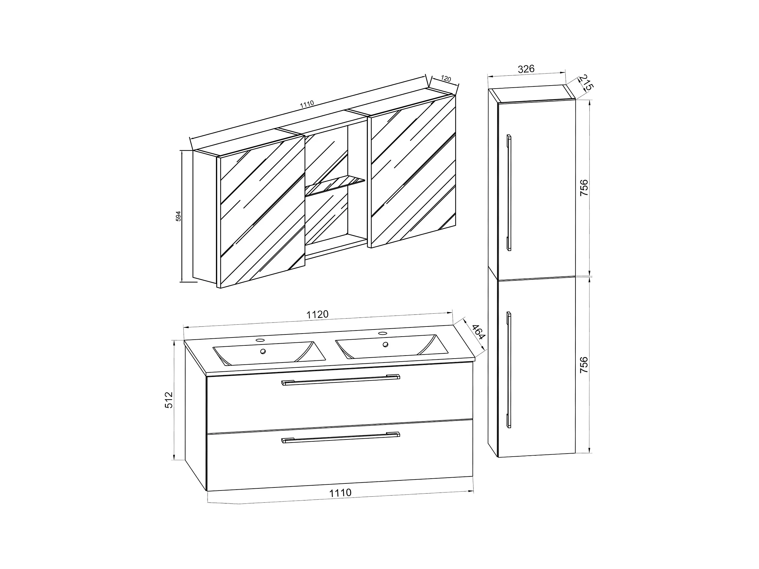 Bathroom furniture washbasin Budasi Black H. 150 x W. 145 x D. 46 cm