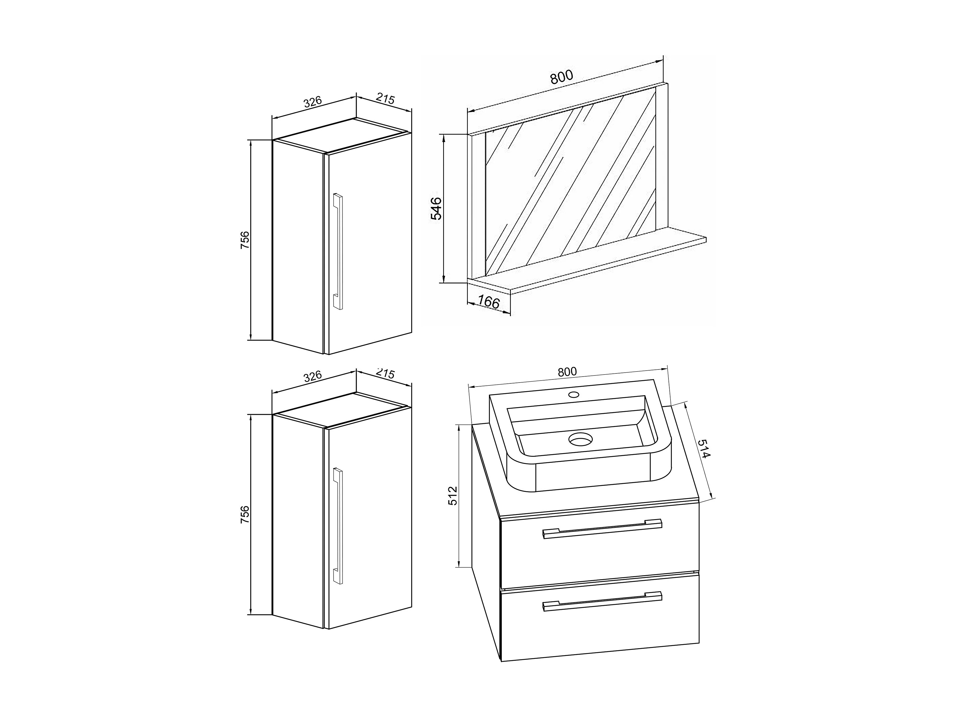 VCM 4-pièces lavabo meubles de salle de bains ensemble lavabo Badinos ll 2 tiroirs (chêne Sonoma|80)