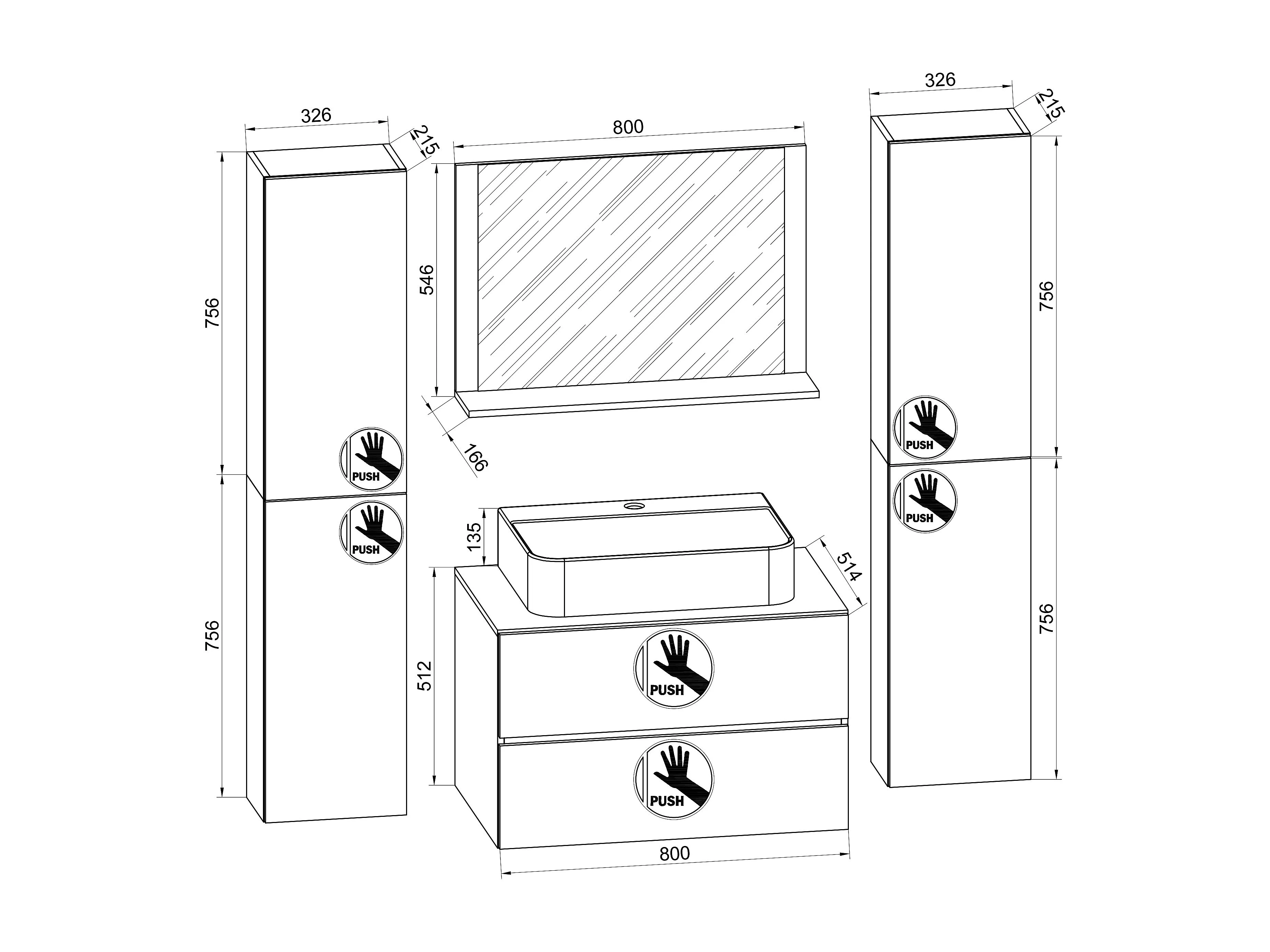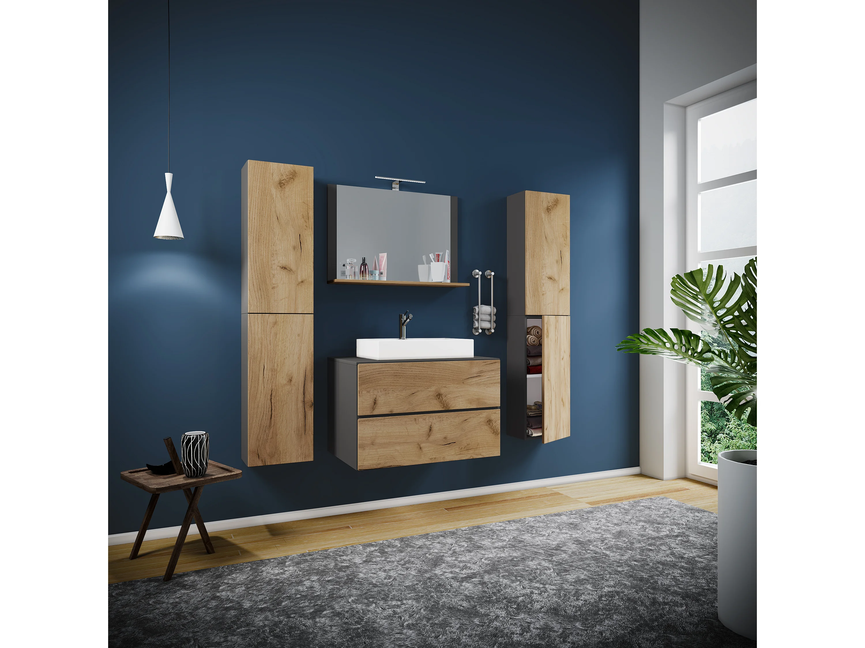Bathroom furniture washbasin Lendas Anthracite / honey oak H. 150 x W. 80 x D. 51 cm