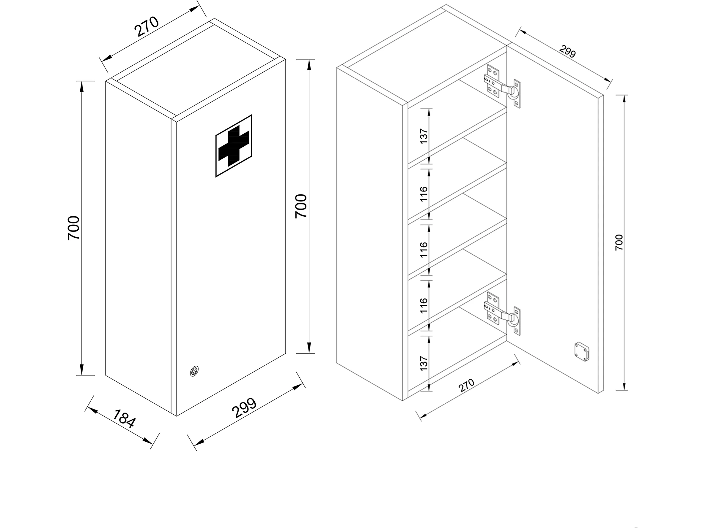 Medical cabinet Medasa White H. 70 x W. 27 x D. 19 cm