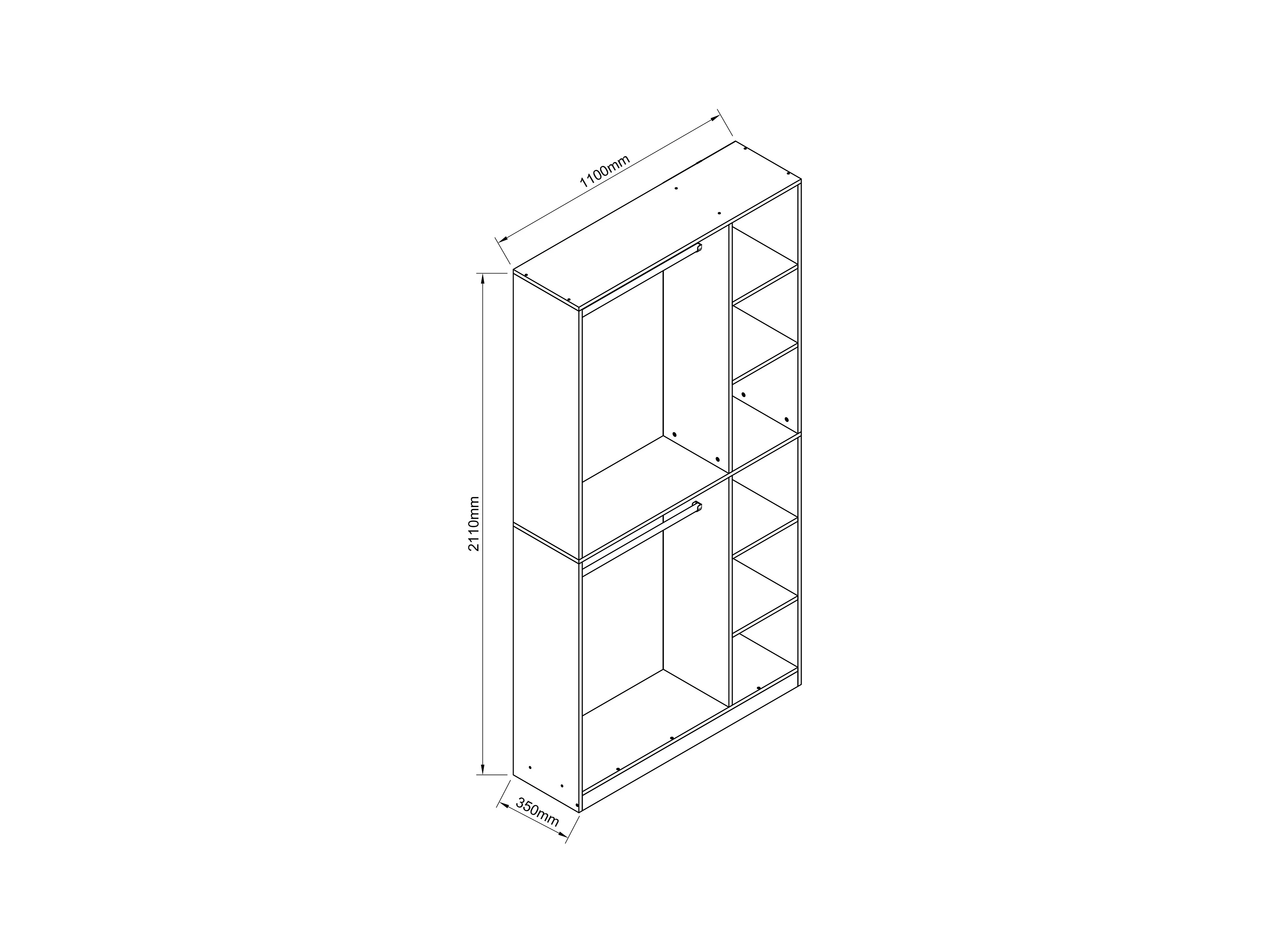 Wardrobe Palosa XL Anthracite W. 110 x H. 211 x D. 35 cm