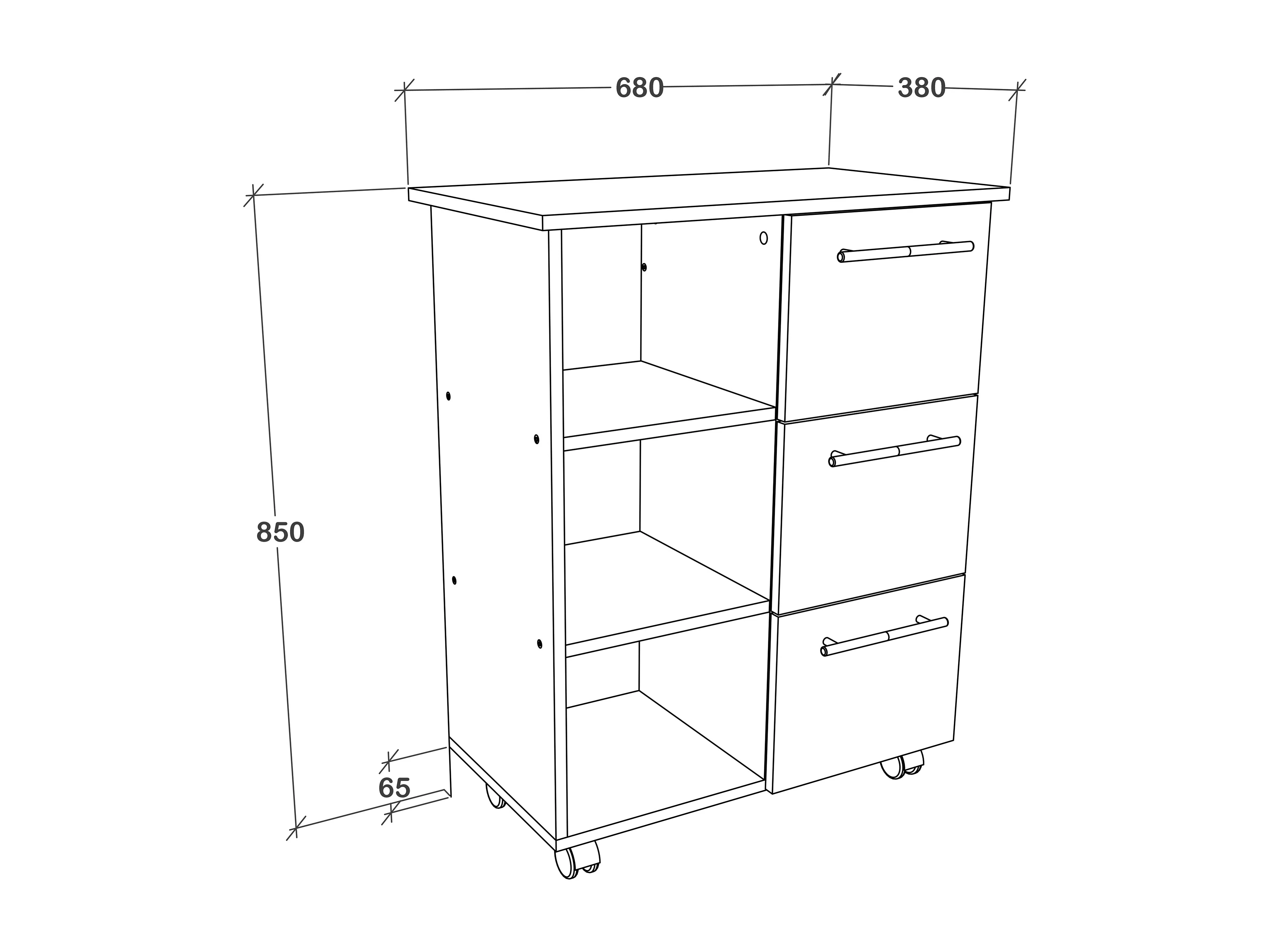 Kitchen furniture serving trolley Esilo White / Anthracite H. 85 x W. 68 x D. 38 cm
