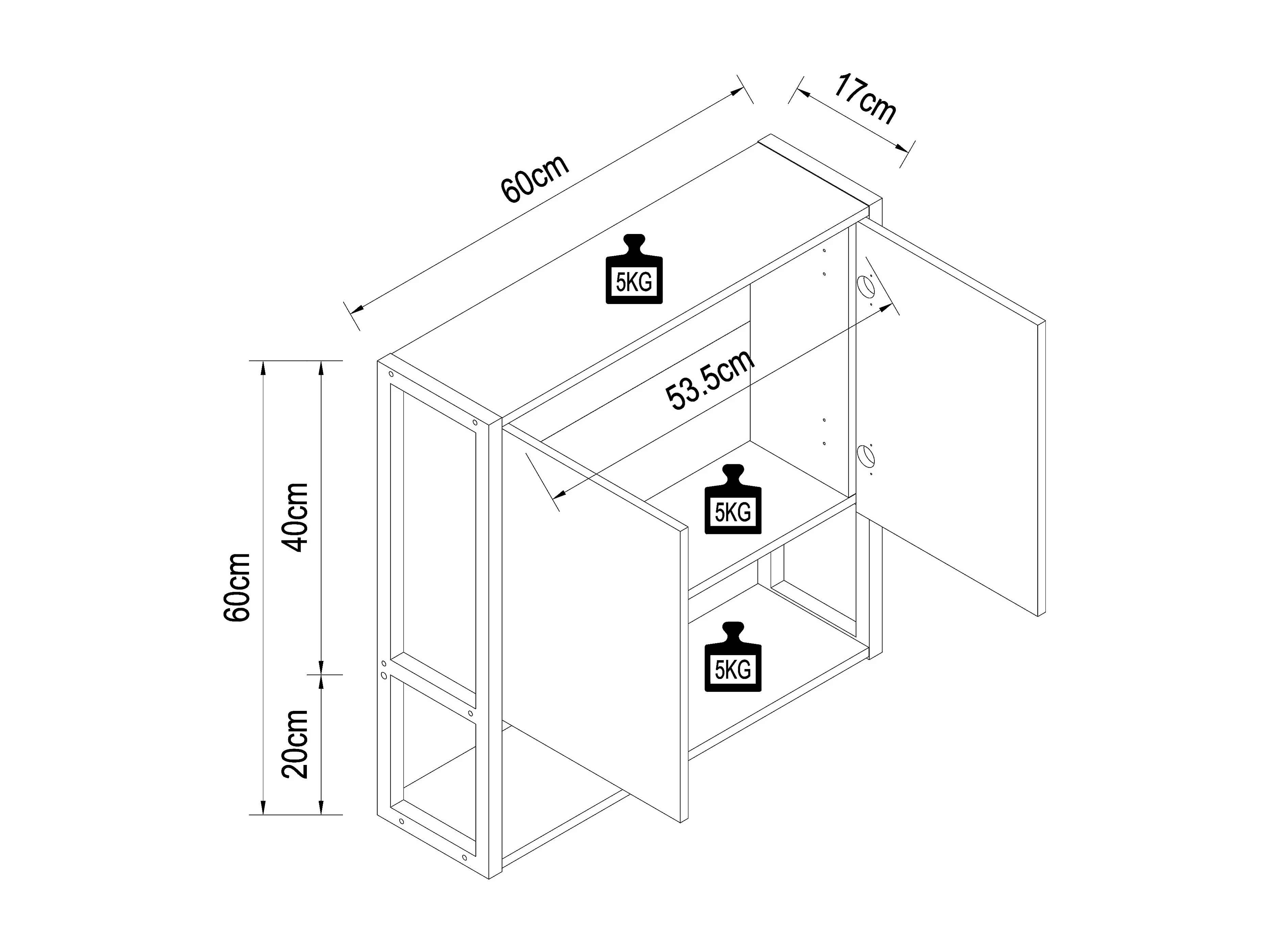 Bathroom furniture Mirror cabinet Edino Honey oak H. 60 x W. 60 x D. 17 cm