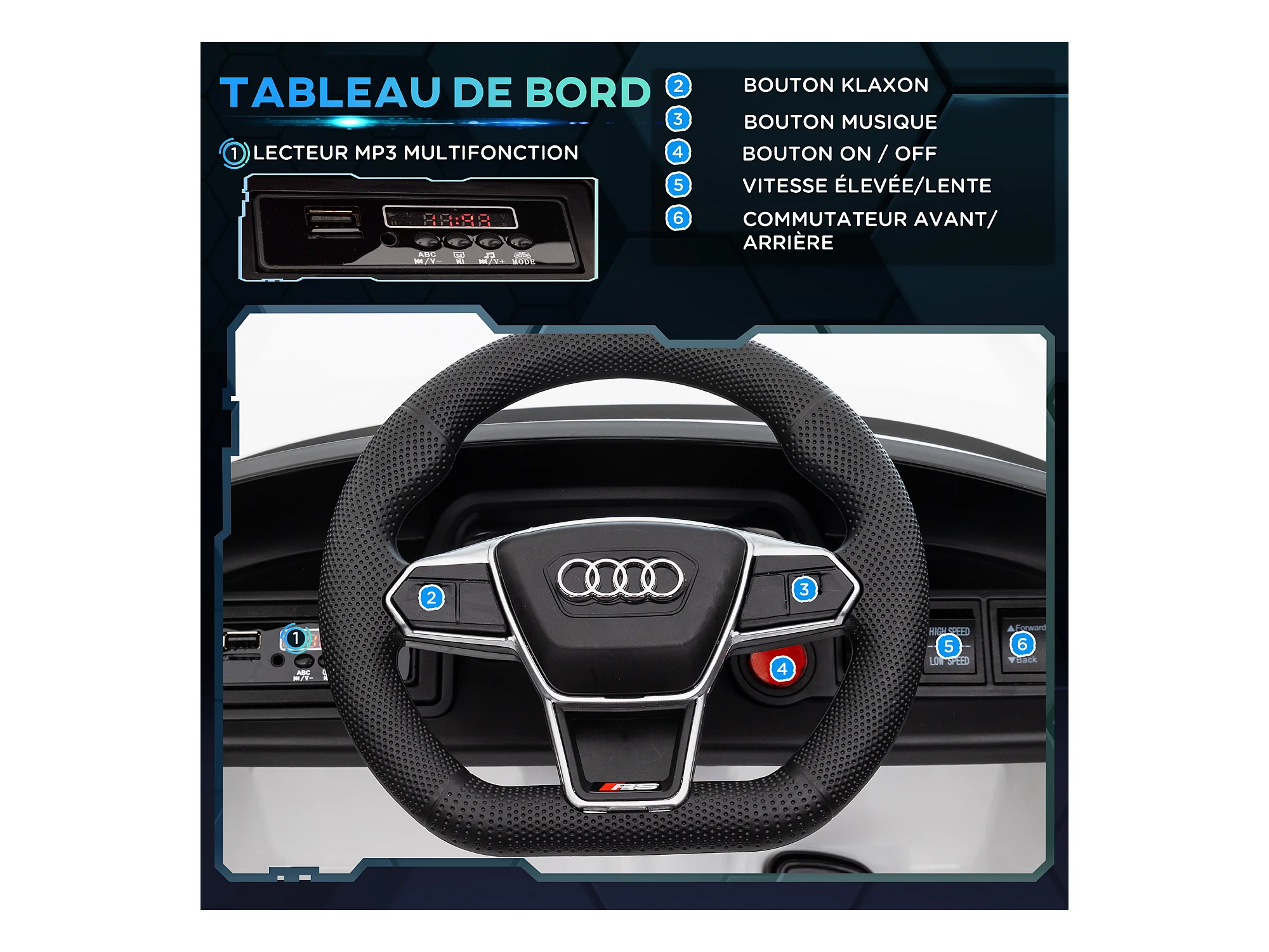 Voiture véhicule électrique enfant e-tron Sportback S line 12 V - V. max. 8 Km/h - effets sonores, lumineux - télécommande, port USB, MP3 - blanc
