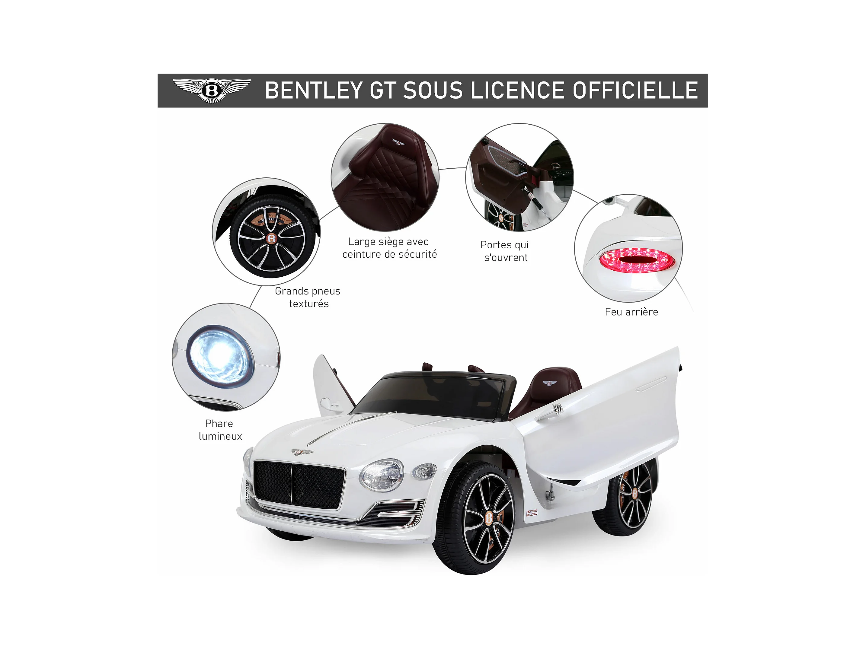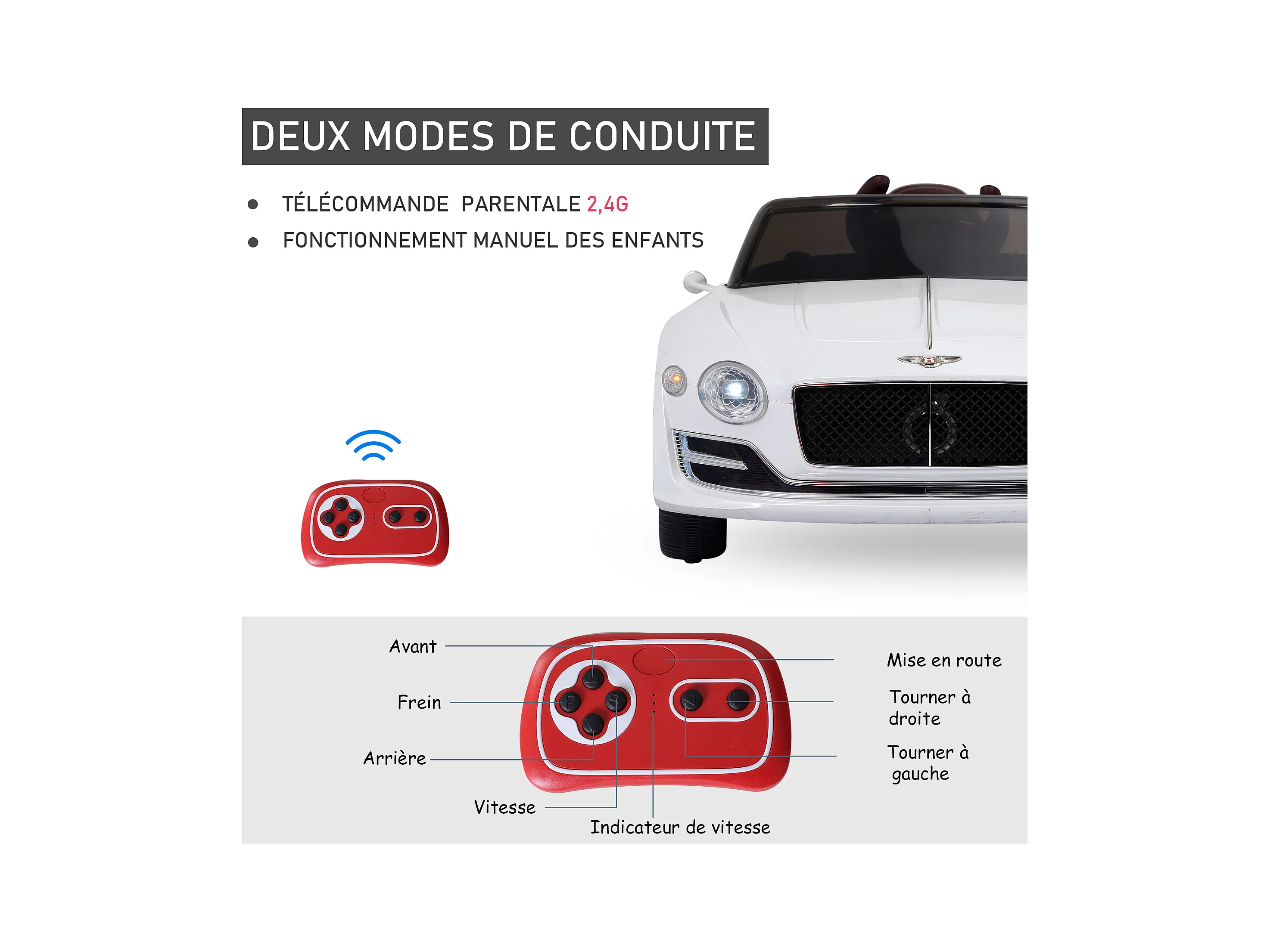 Véhicule électrique enfants 2 moteurs 108L x 60l x 43H cm télécommande effets sonores + lumineux blanc Bentley