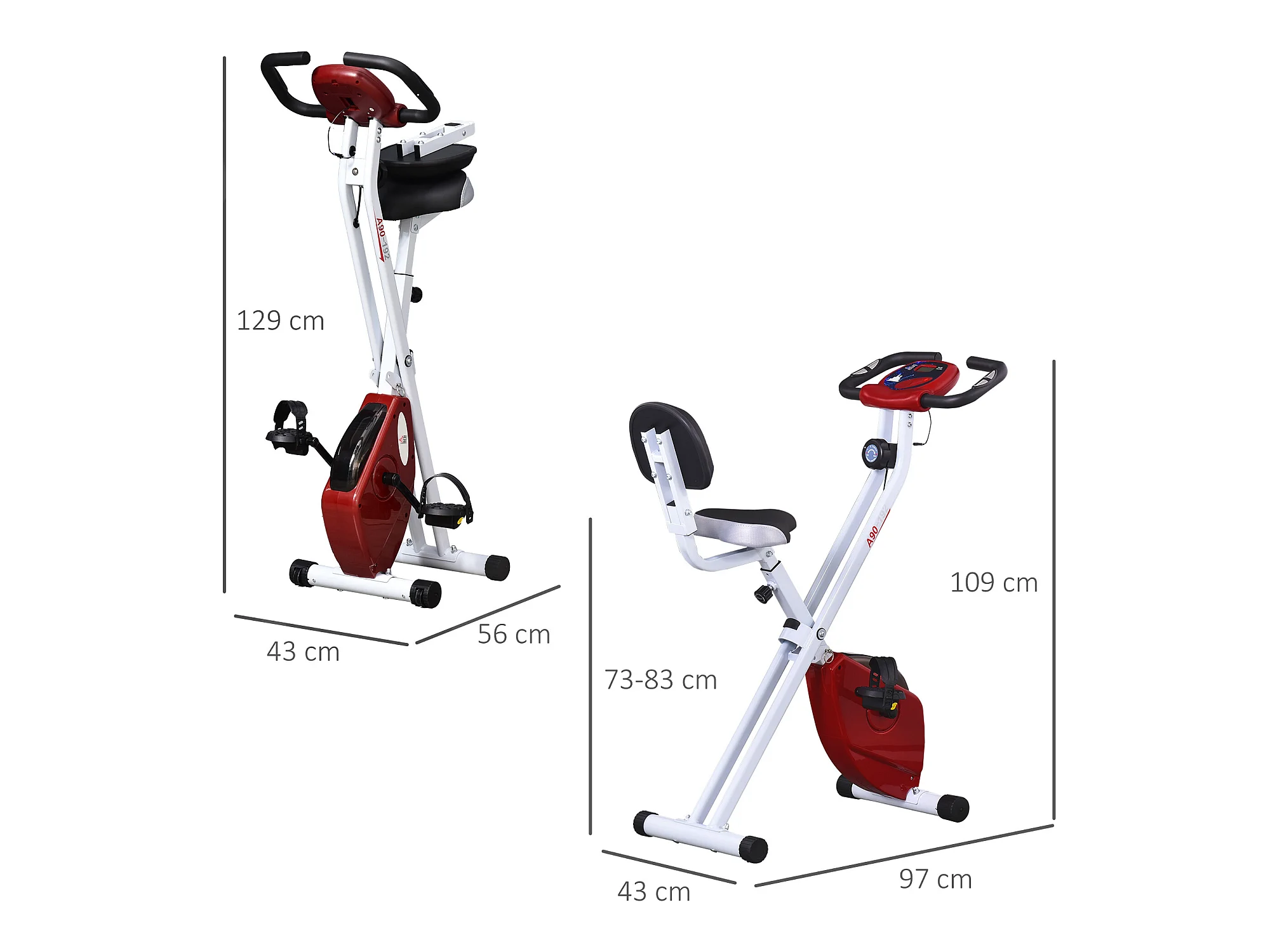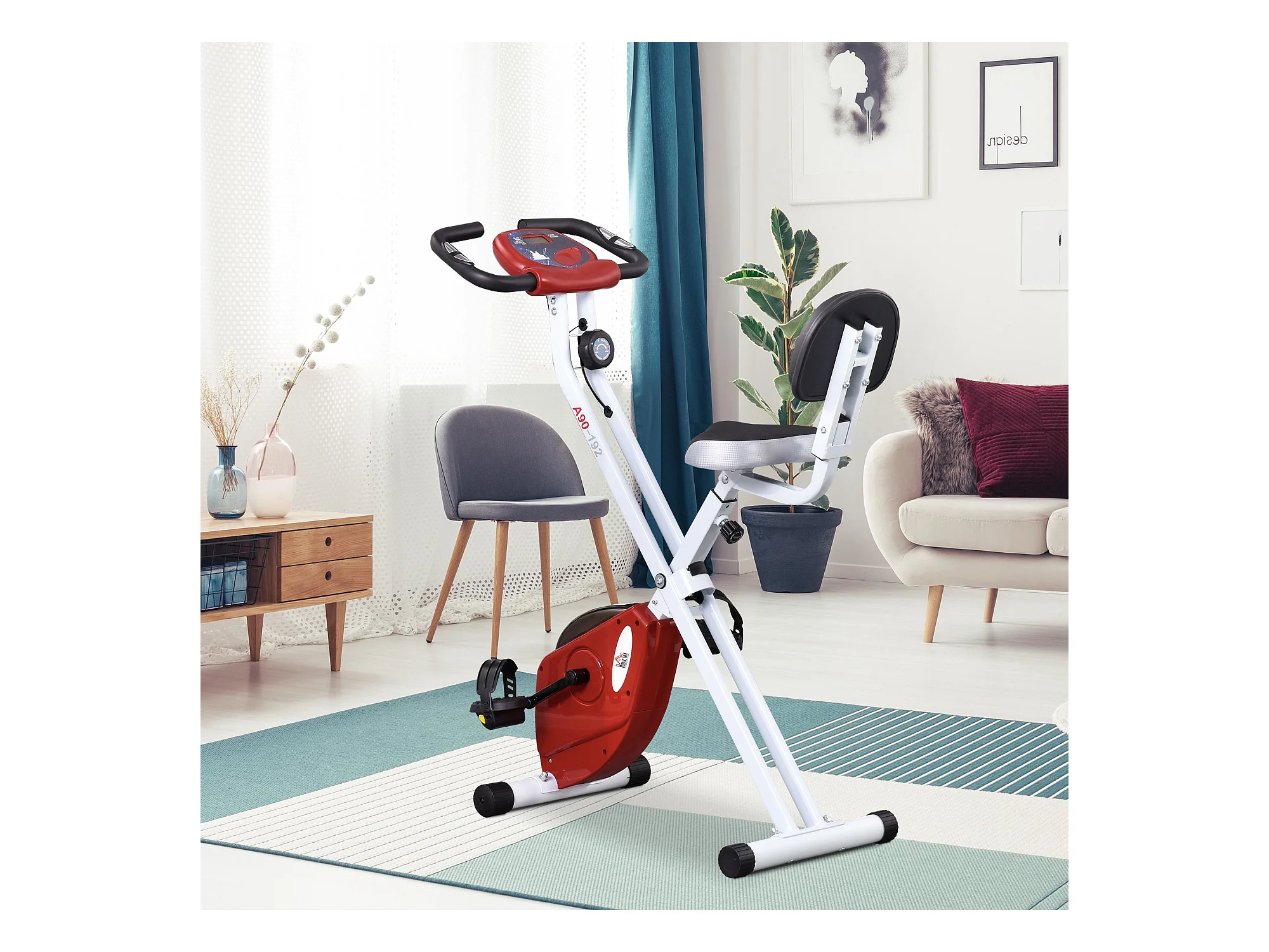 Vélo d'appartement pliable 8 niveaux de résistance magnétique selle réglable dossier écran LCD multifonction capteur fréquence cardiaque rouge