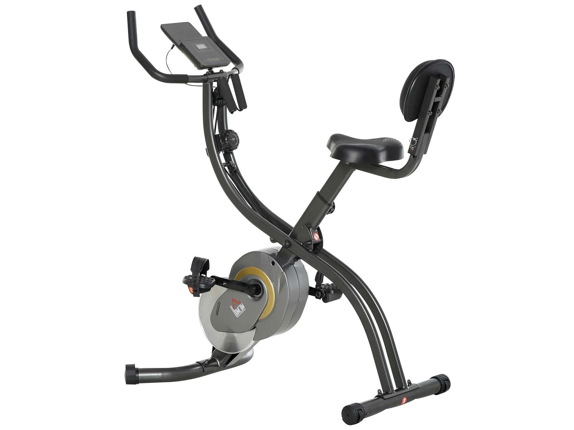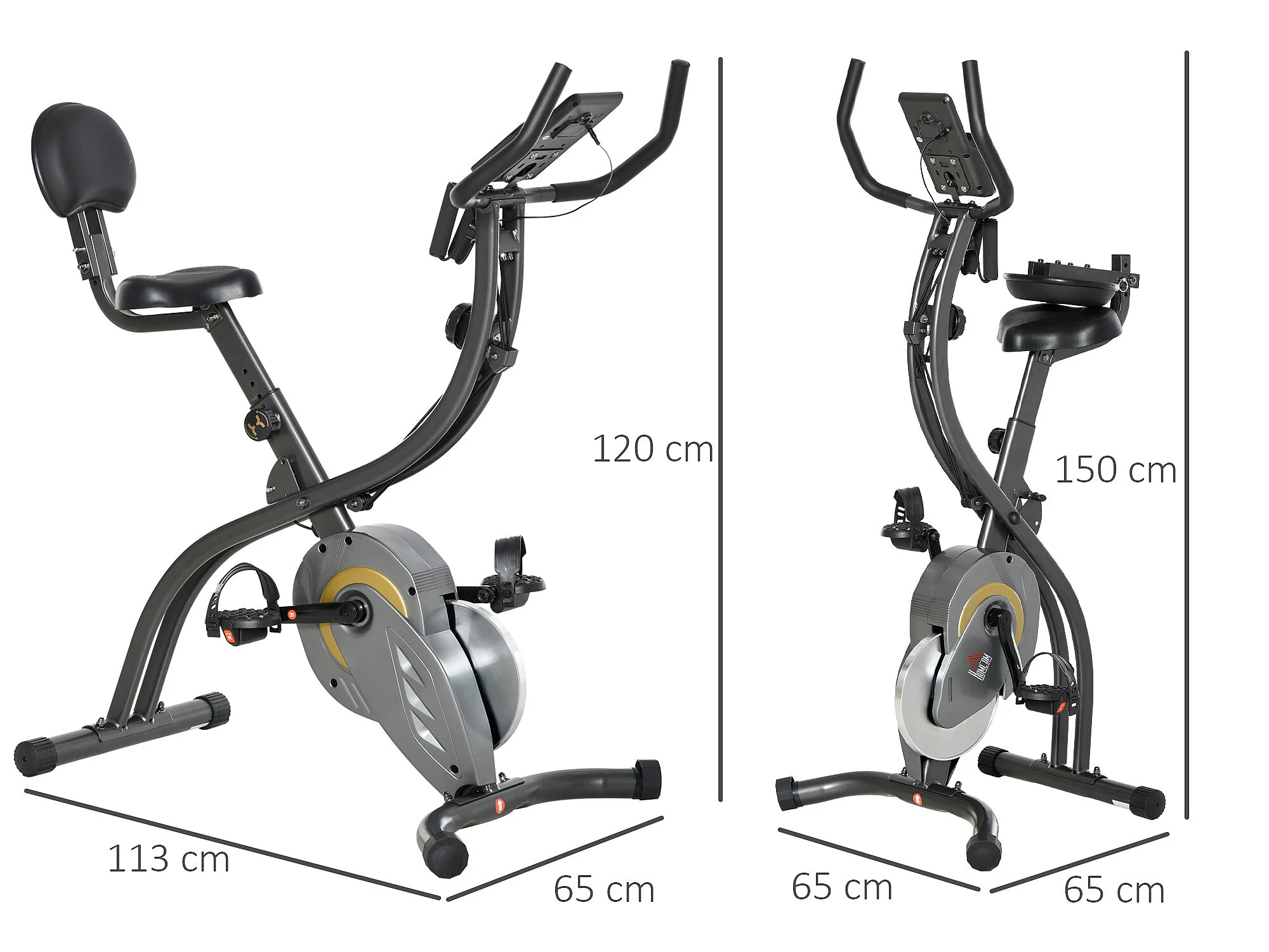 Vélo d'appartement pliable selle réglable dossier guidon ergonomique écran LCD multifonction bandes résistance acier gris noir