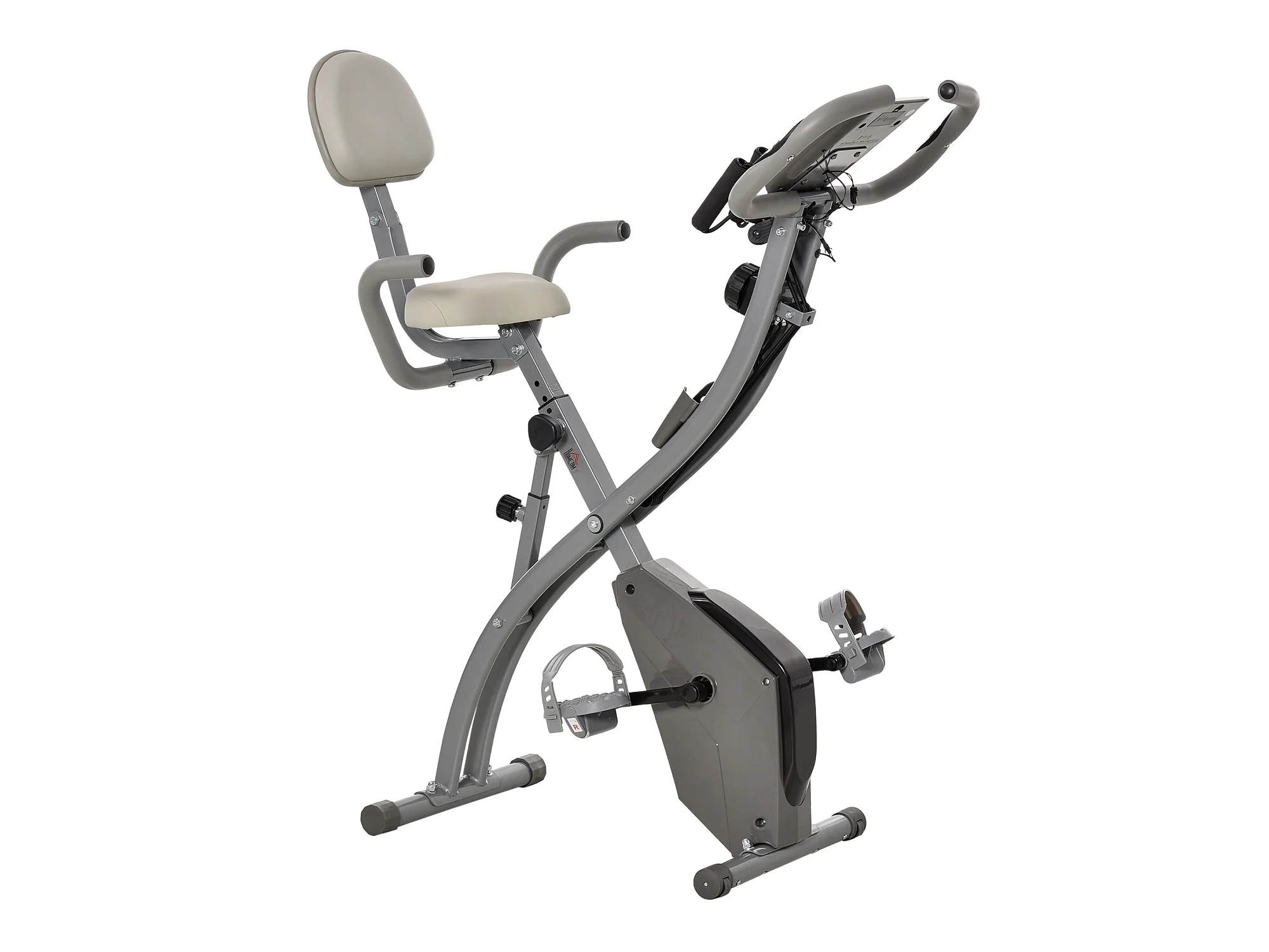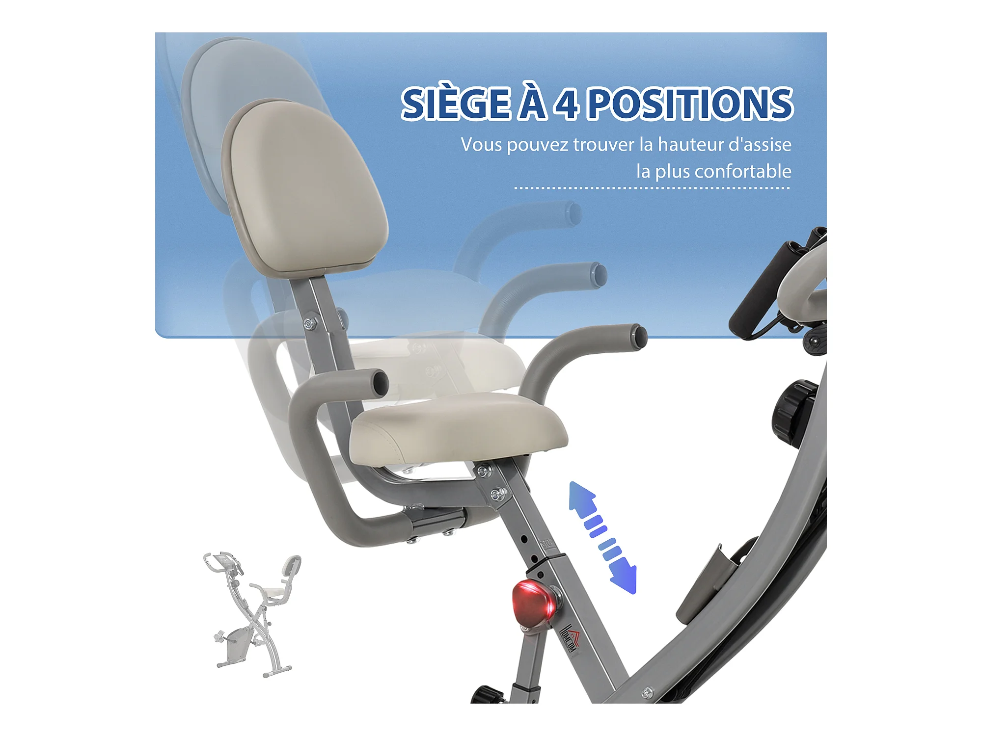 Vélo d'appartement pliable grand confort dossier selle réglable poignées ergonomiques écran LCD multifonction support tablette acier blanc gris