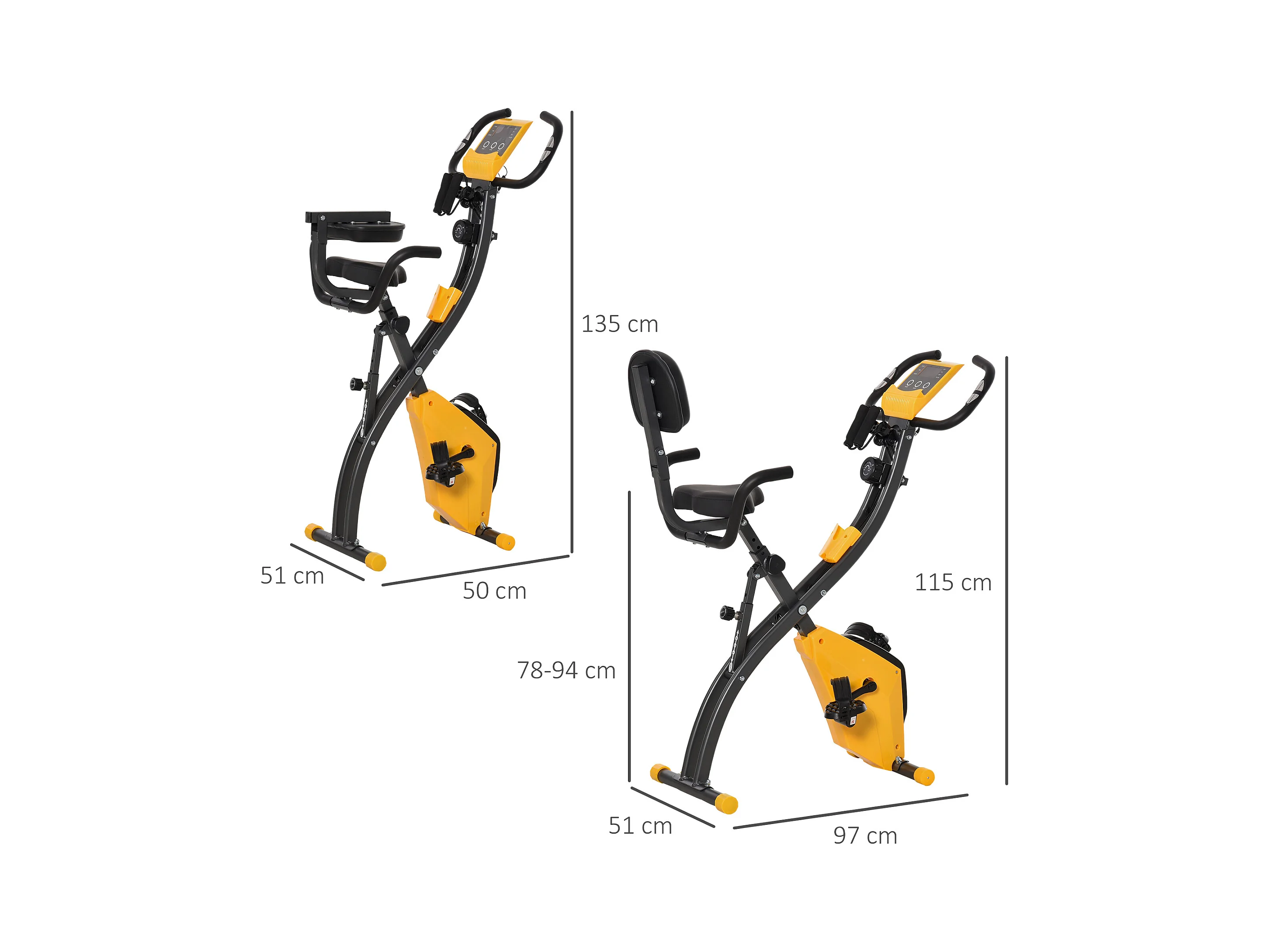 Vélo d'appartement pliable grand confort dossier selle réglable poignées ergonomiques écran LCD multifonction support tablette acier blanc gris