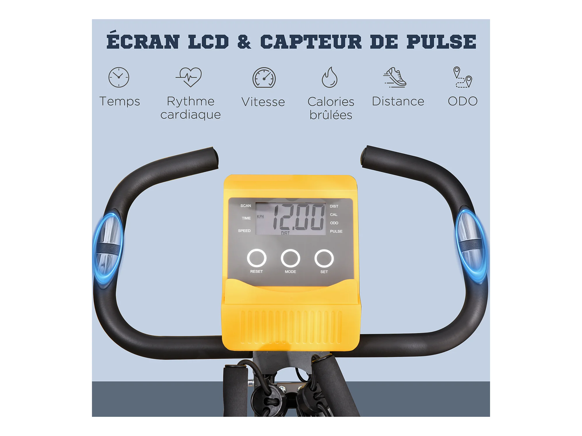 Vélo d'appartement TEMPO Roue d'inertie 3kg - 8 niveaux de résistance, Capteurs Pouls, Ecran d'entraînement, Réglable