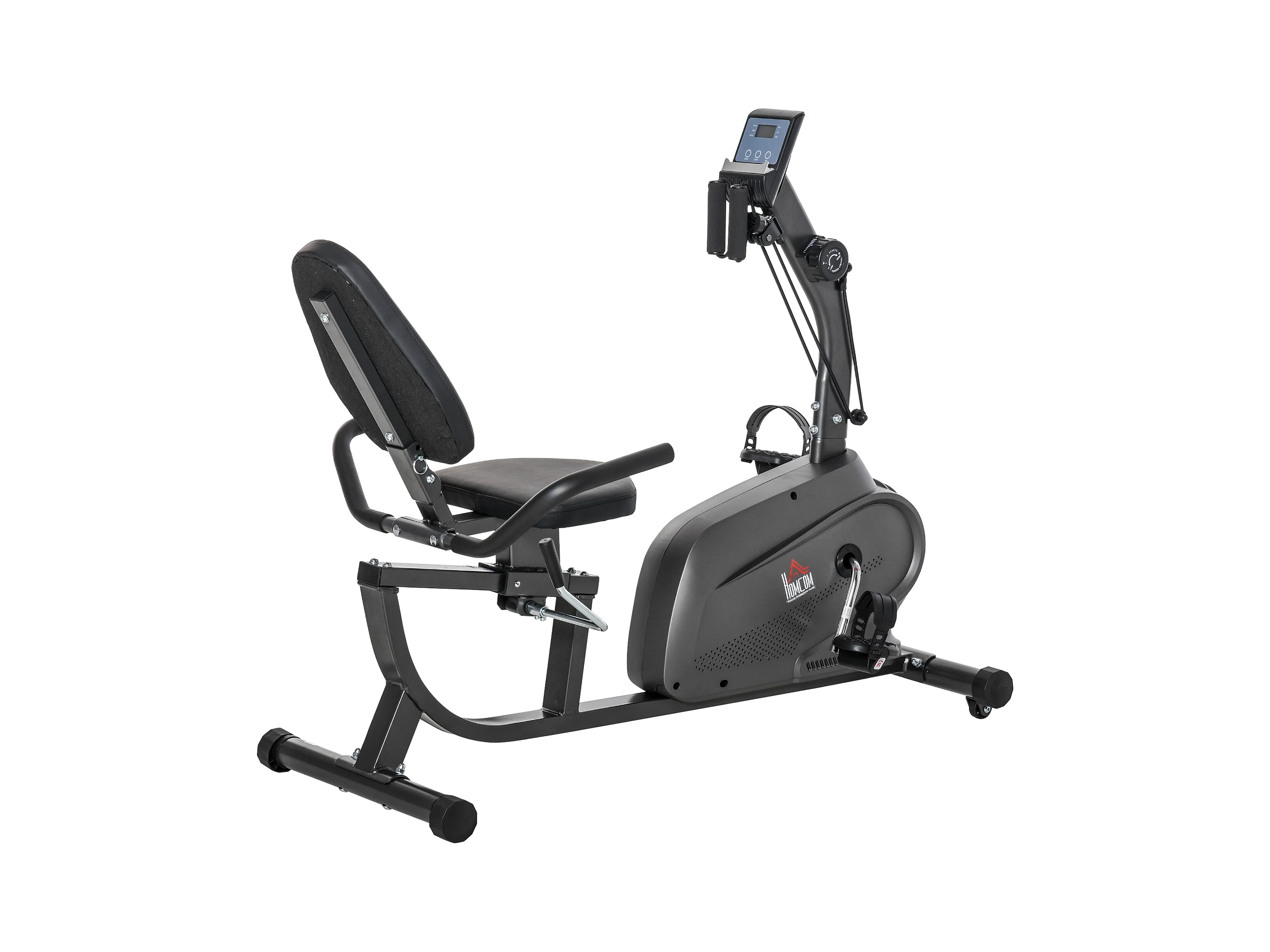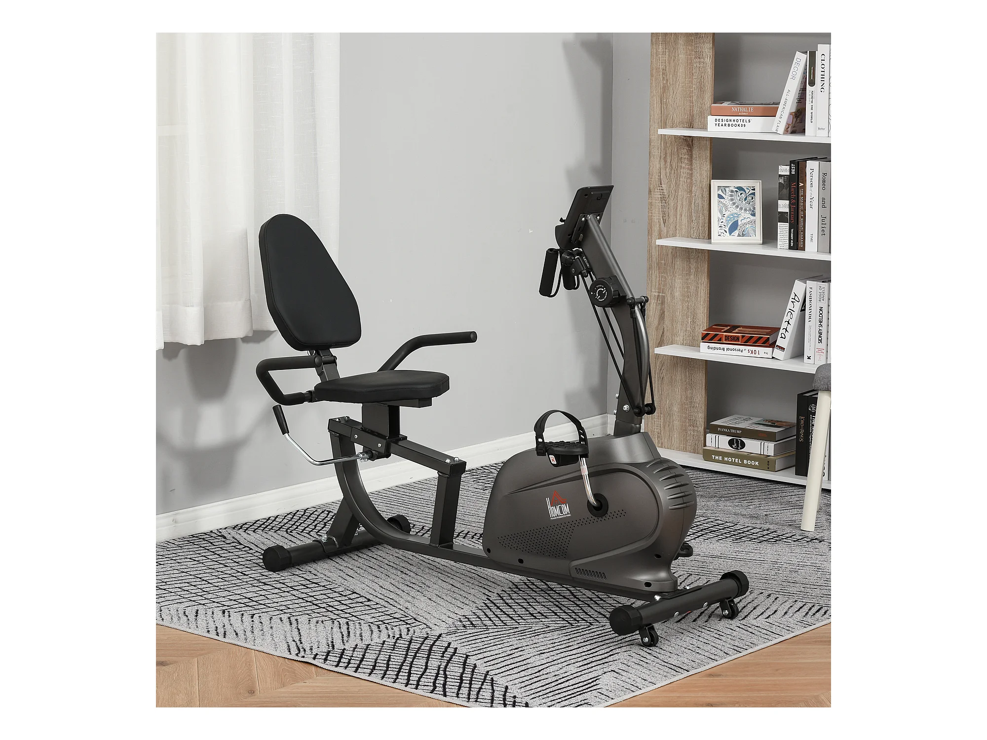 Vélo d'appartement semi-allongé magnétique écran LCD multifonction selle réglable 2 bandes résistance acier noir