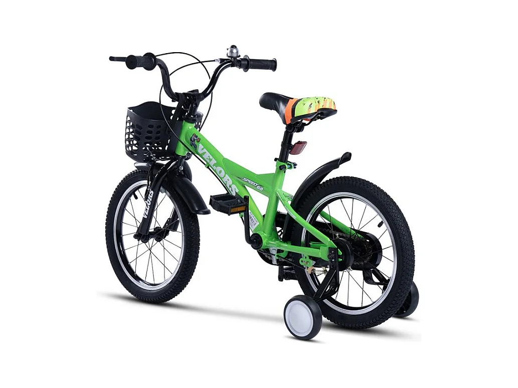 Vélo enfant 16 pouces avec roues stabilisatrices, cadre acier, frein double et pneus ville, vert (96x45x18 cm)