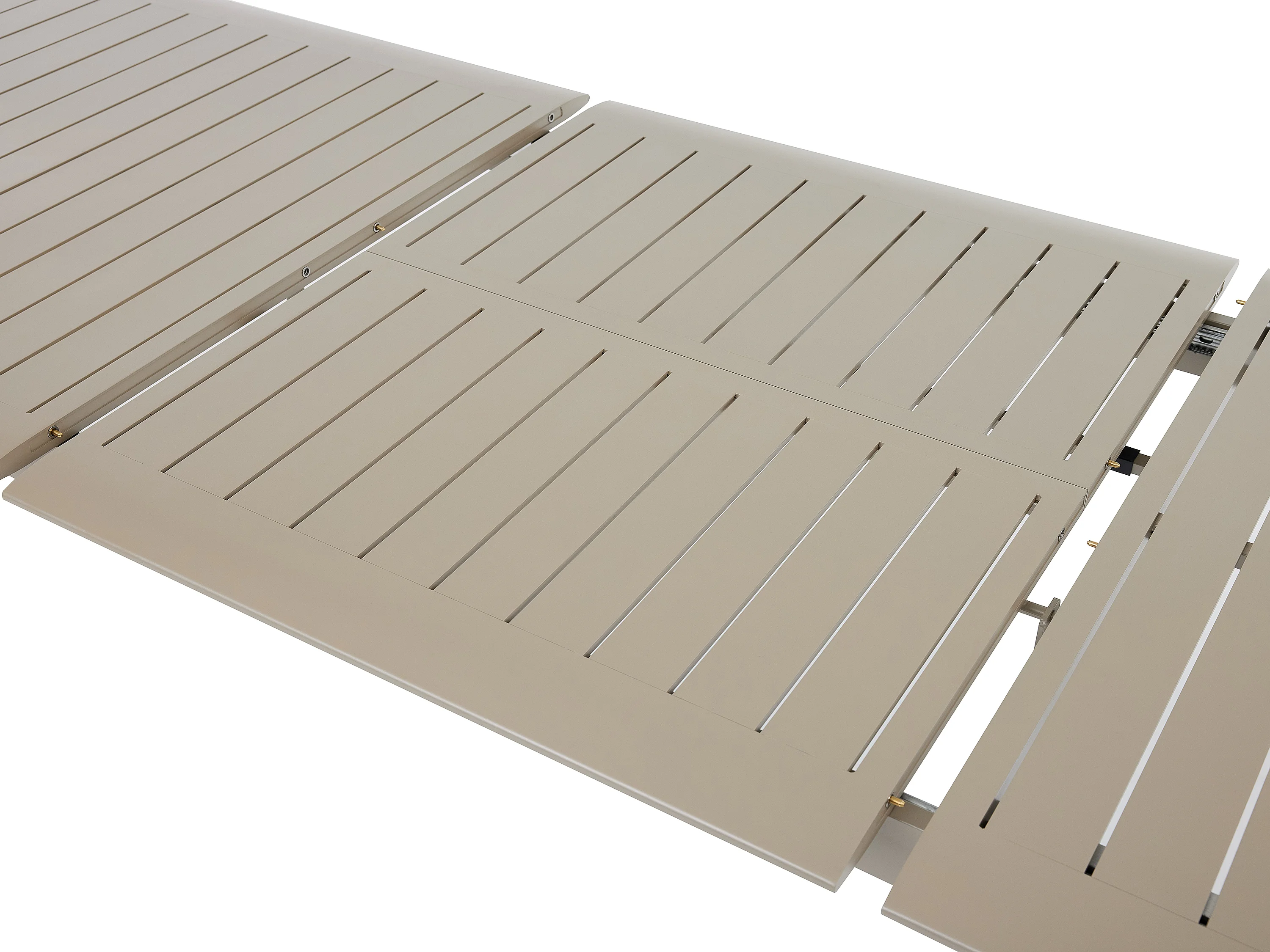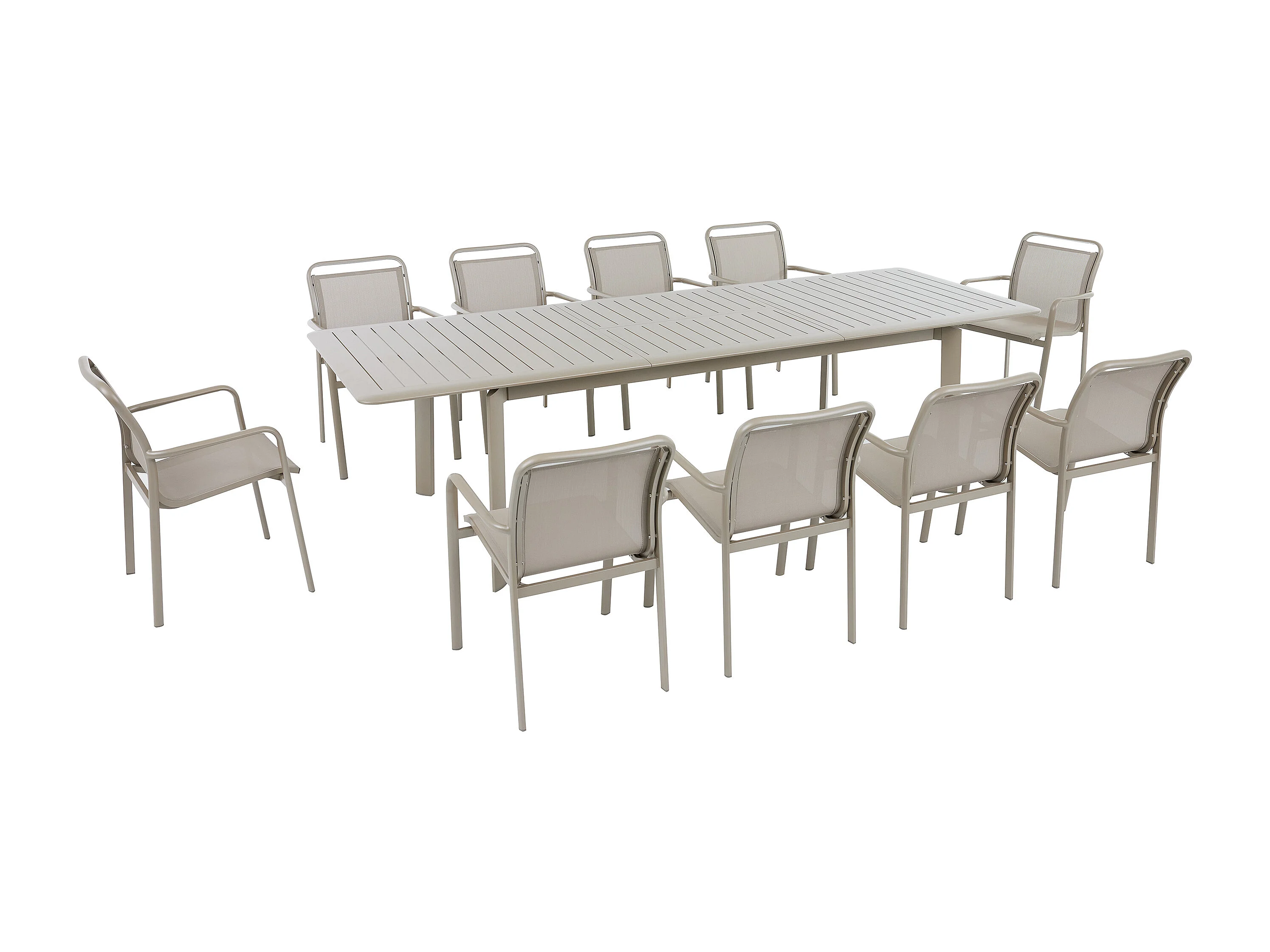 Salle à manger de jardin en aluminium : une table extensible L.205/286.5 cm et 10 fauteuils empilables - Taupe - VELYRA de MYLIA