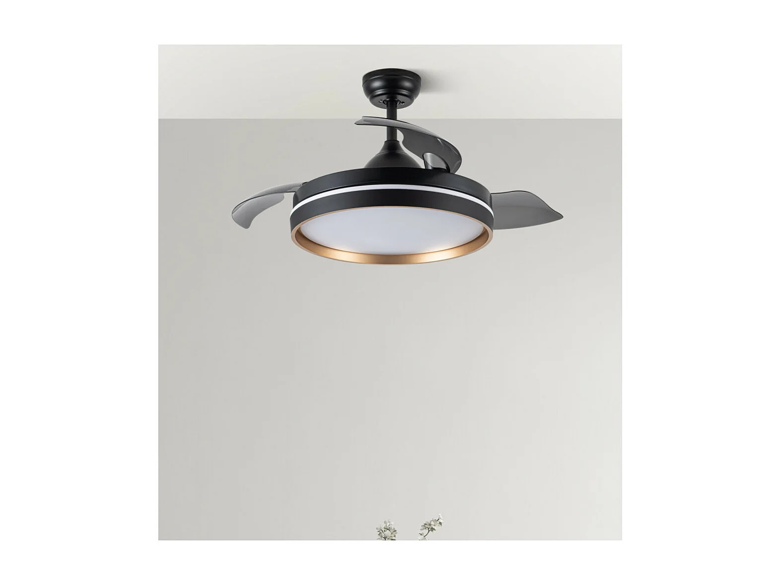Ventilateur CC NALON L Or Noir CCt Télécommande LED Dimmable FABRILAMP