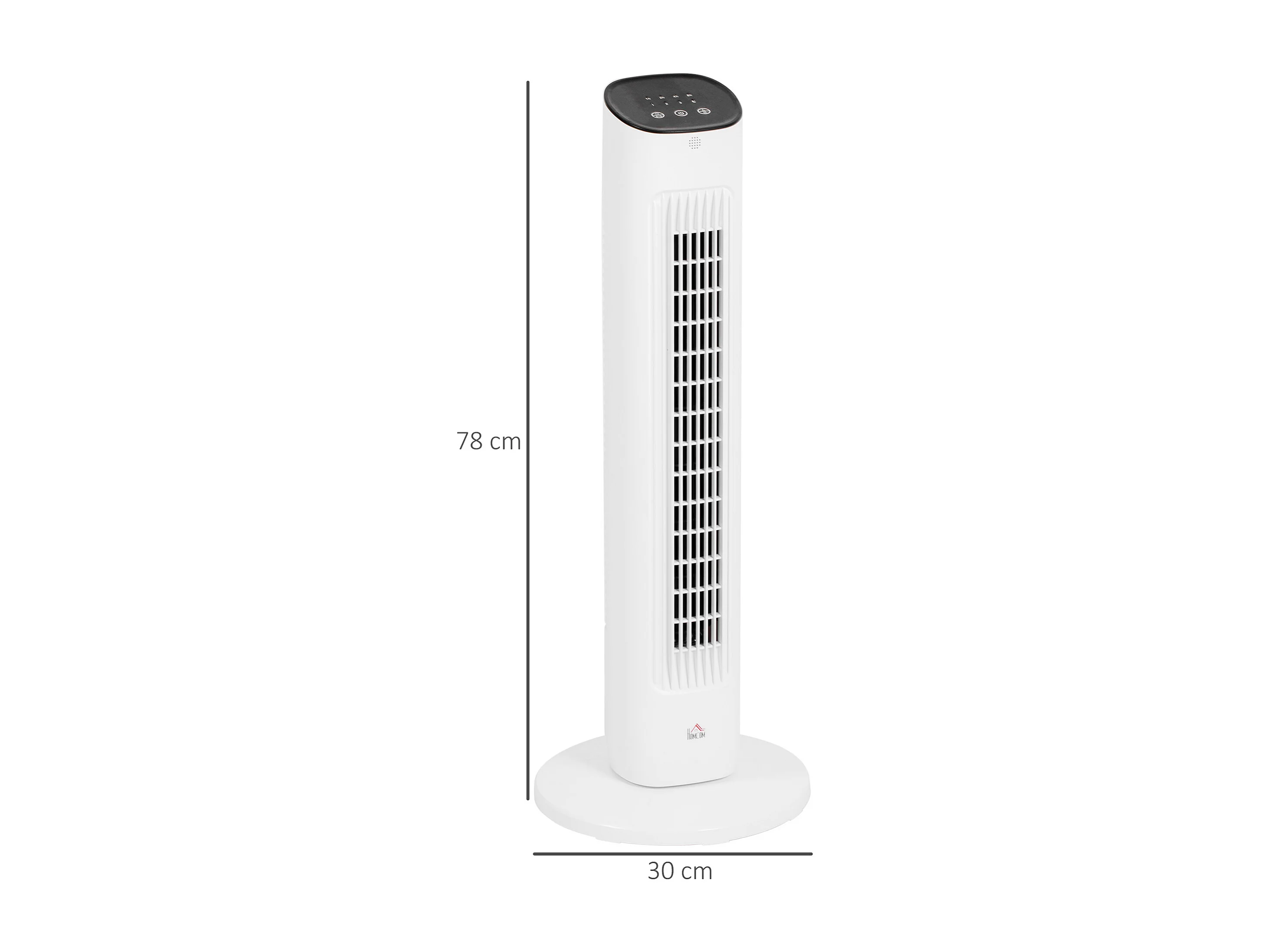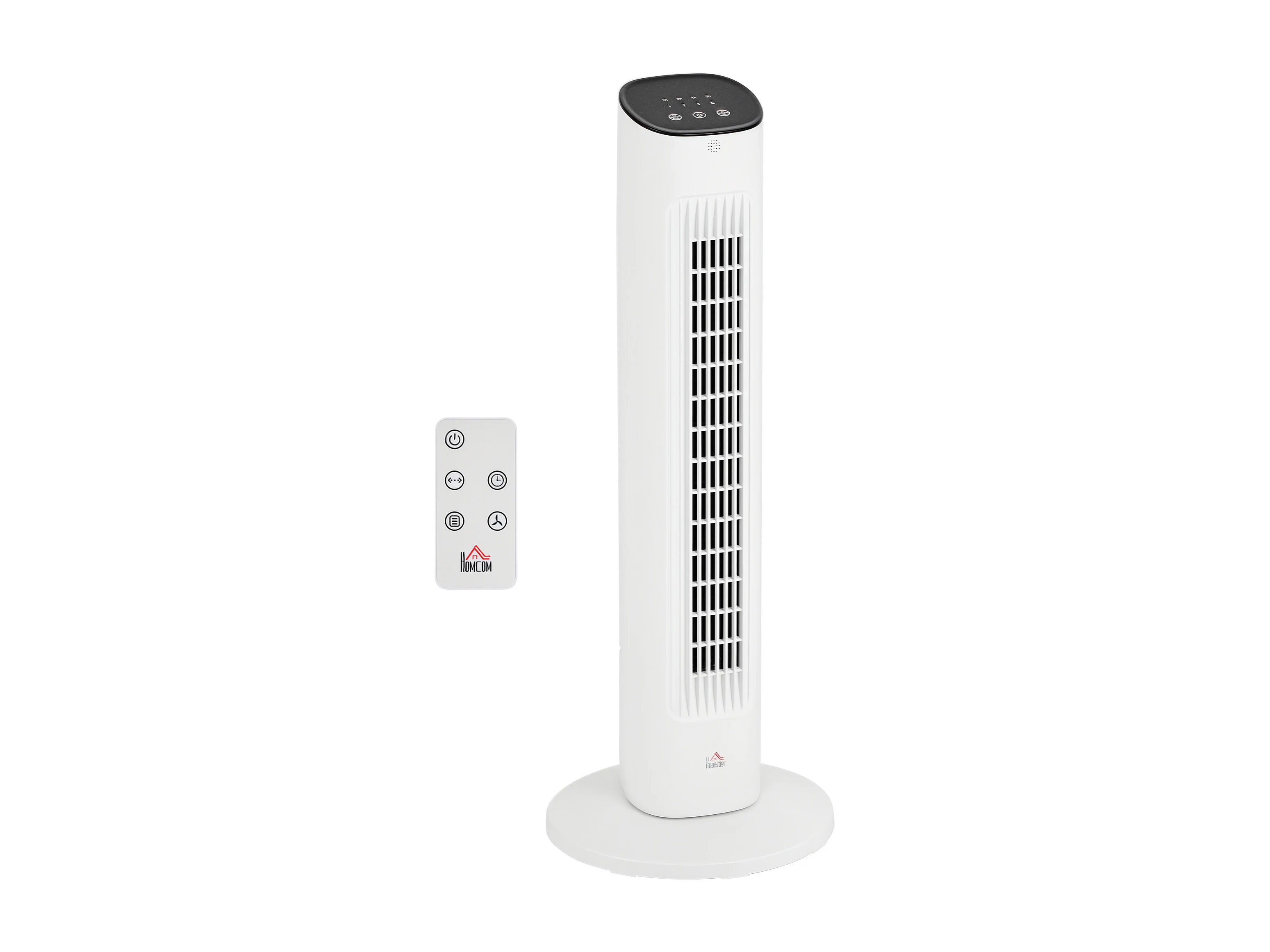 Ventilateur colonne oscillant 50W avec télécommande - 3 vitesses, timer, affichage LED - blanc
