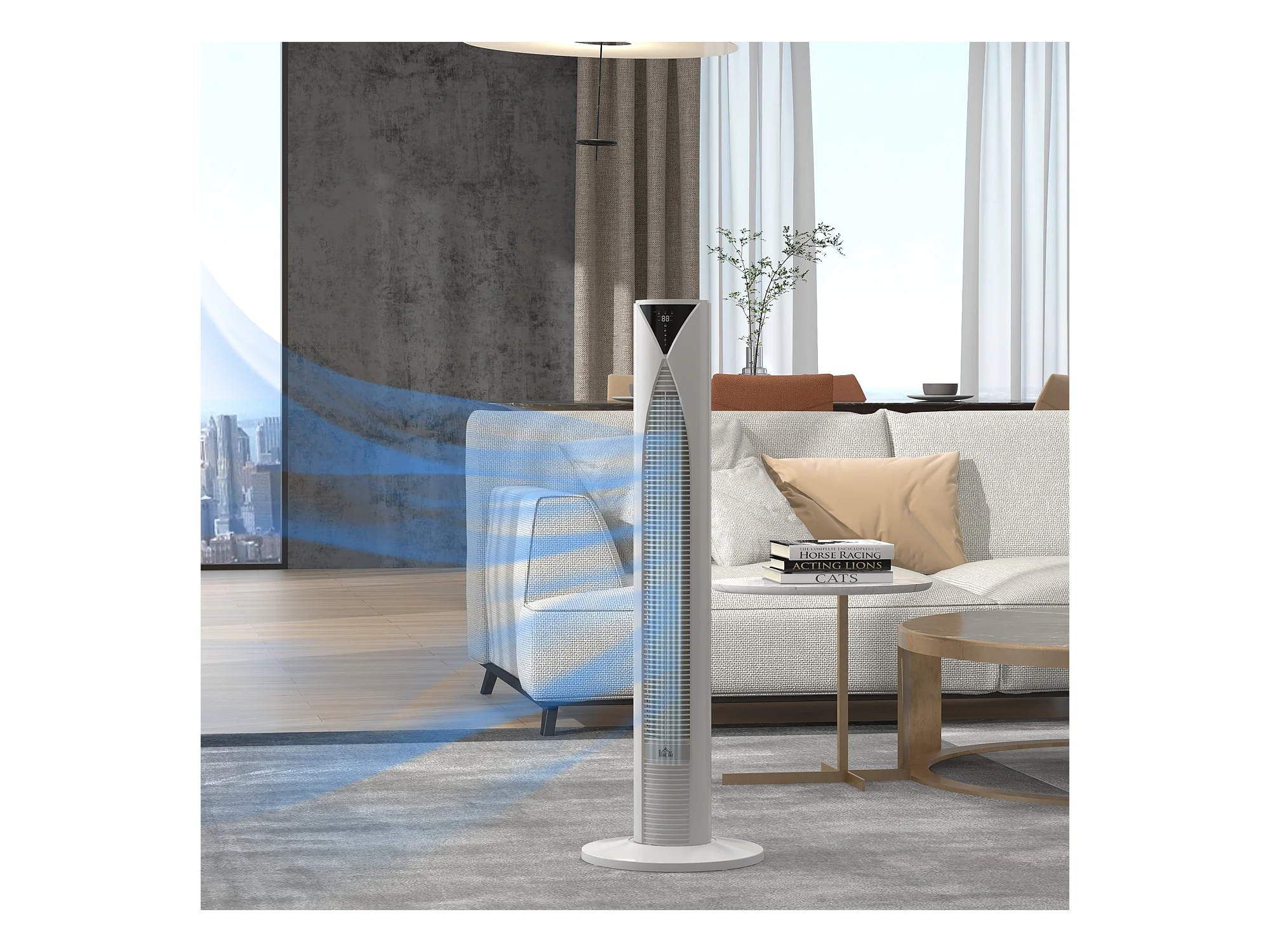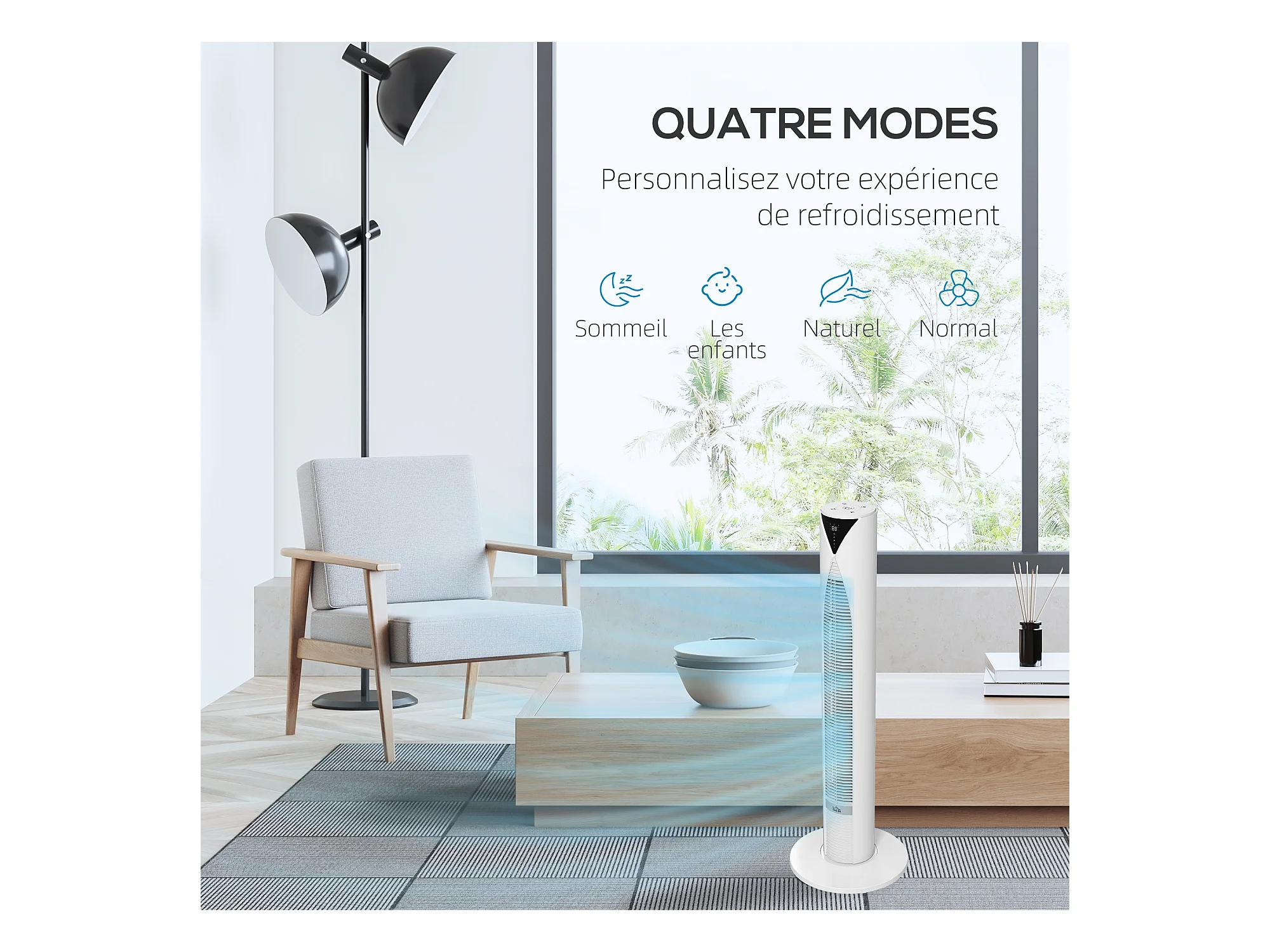 Ventilateur colonne tour oscillant 45 W silencieux télécommande incluse timer 4 modes 3 vitesses filtre blanc