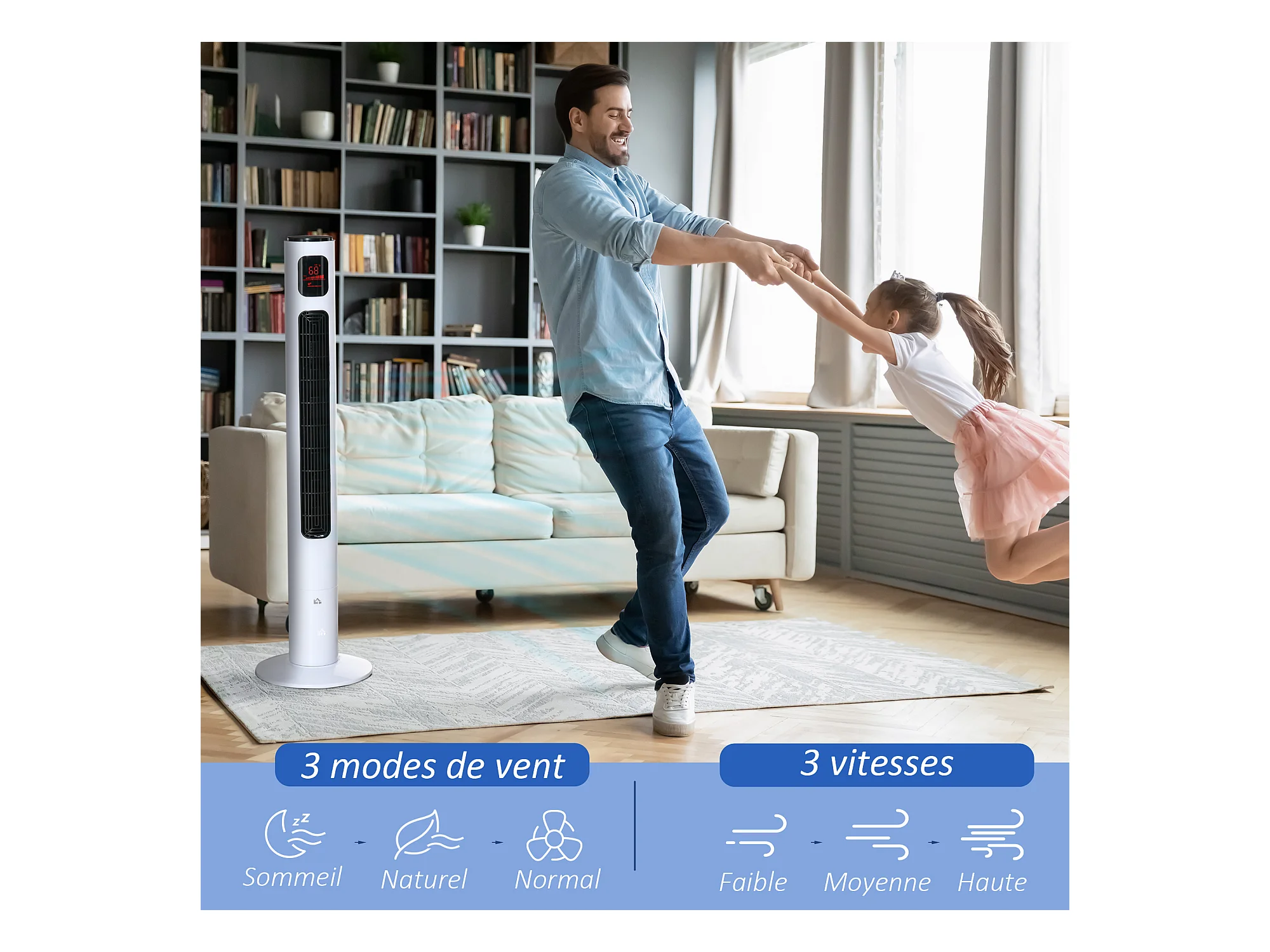 Ventilateur colonne tour oscillant 45 W silencieux télécommande timer 3 modes 3 vitesses blanc