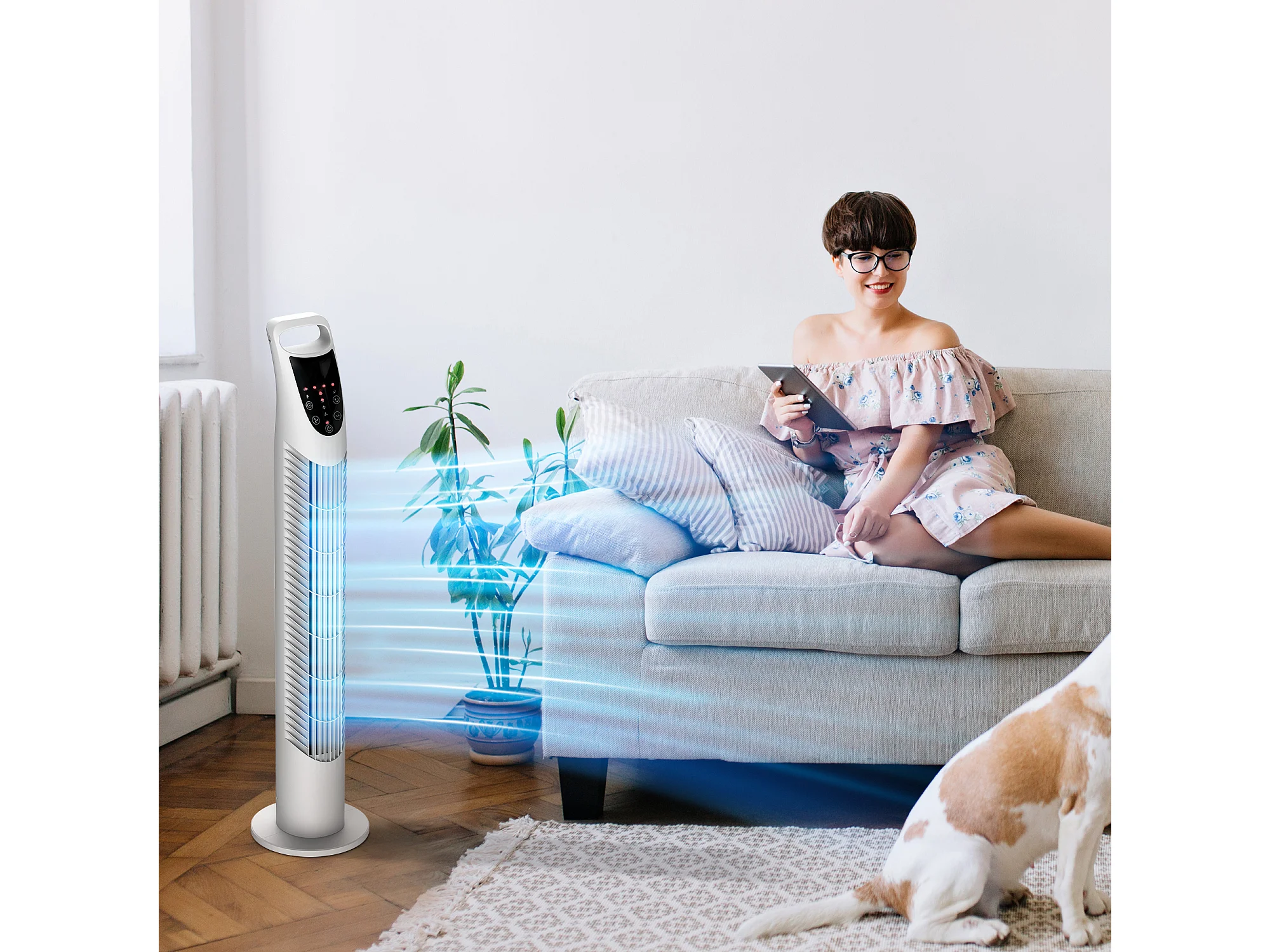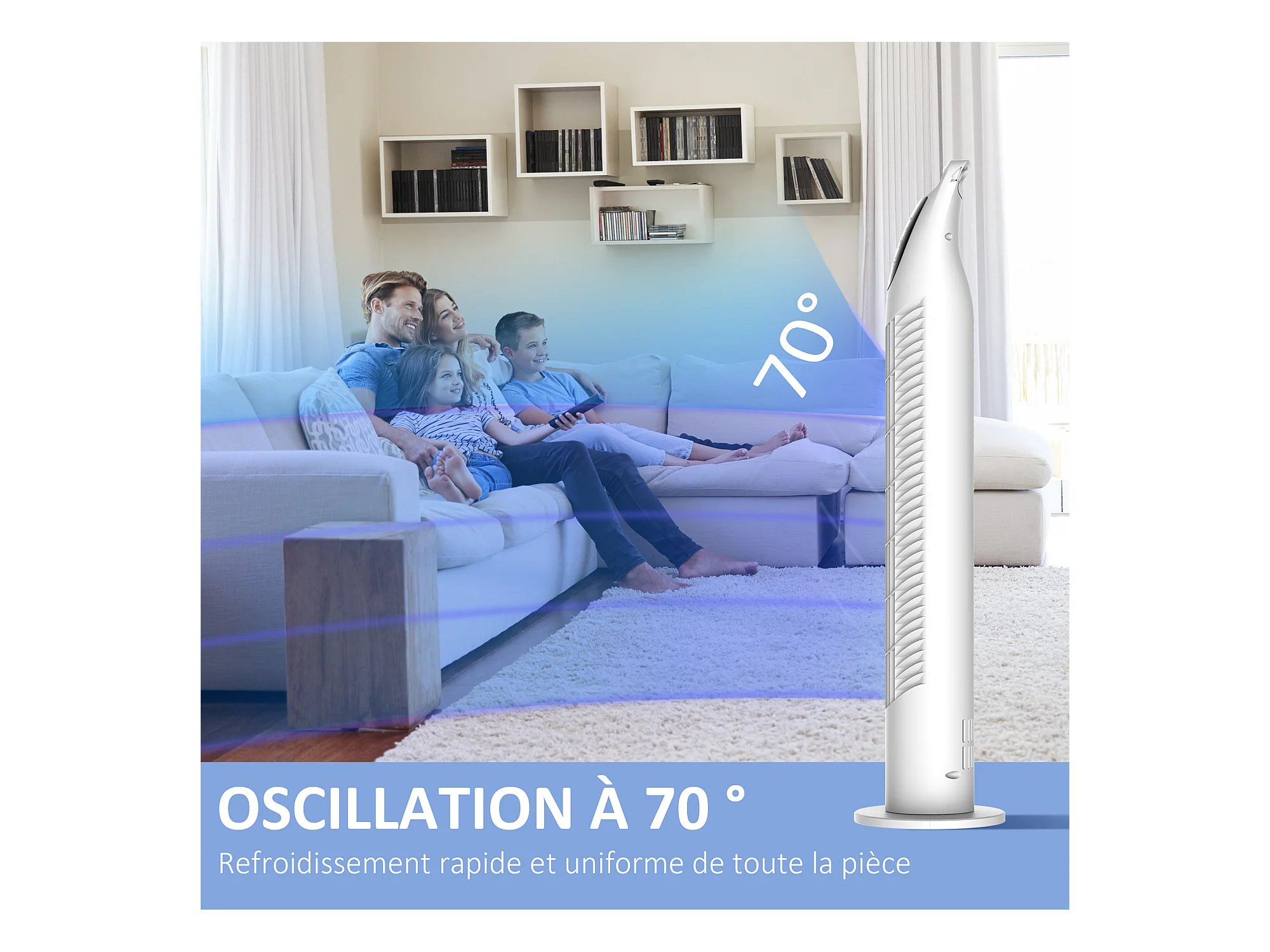 Ventilateur colonne tour oscillant silencieux 40 W télécommande panneau contrôle tactile 3 vitesses Ø 18 x 78H cm blanc