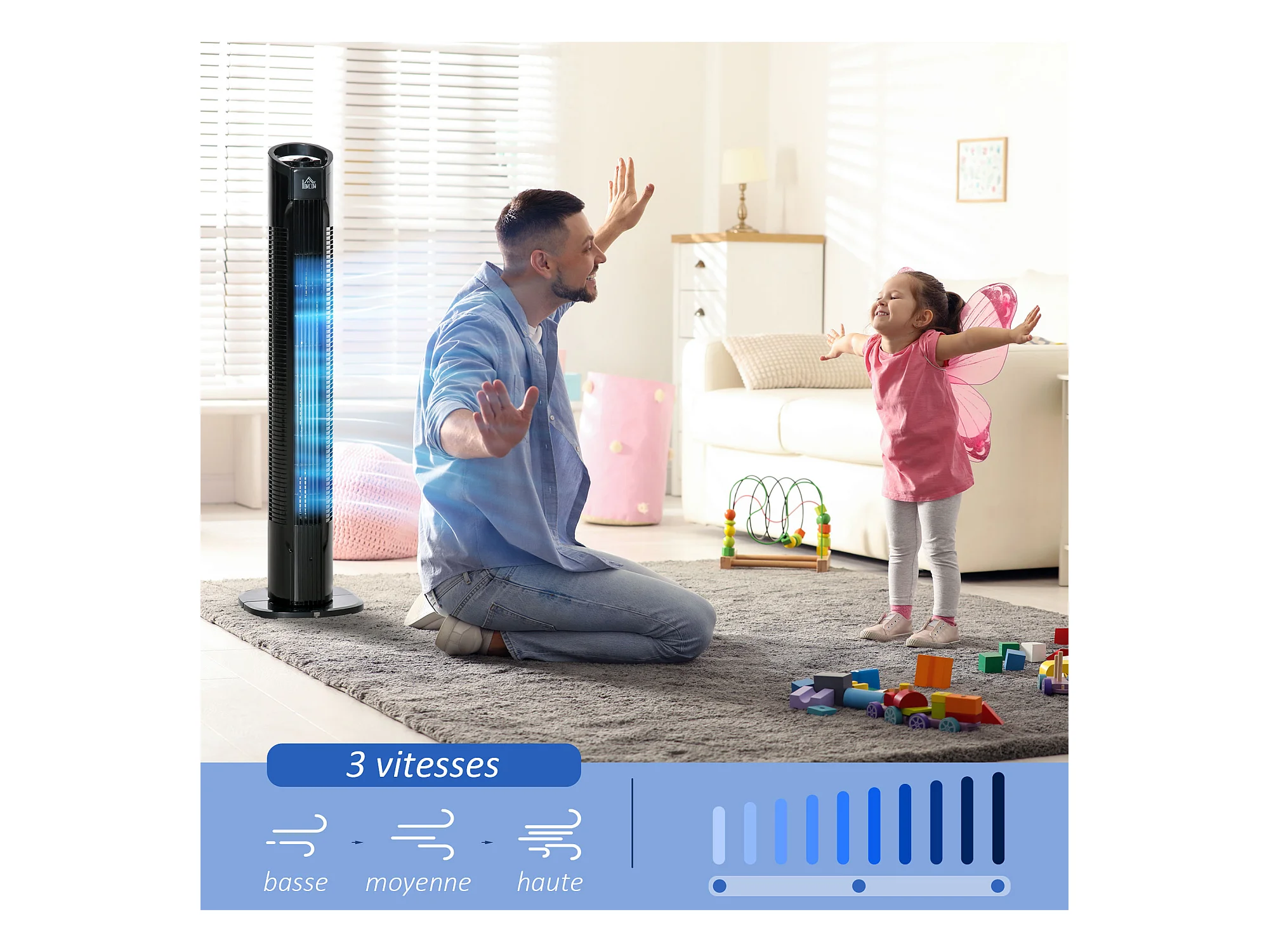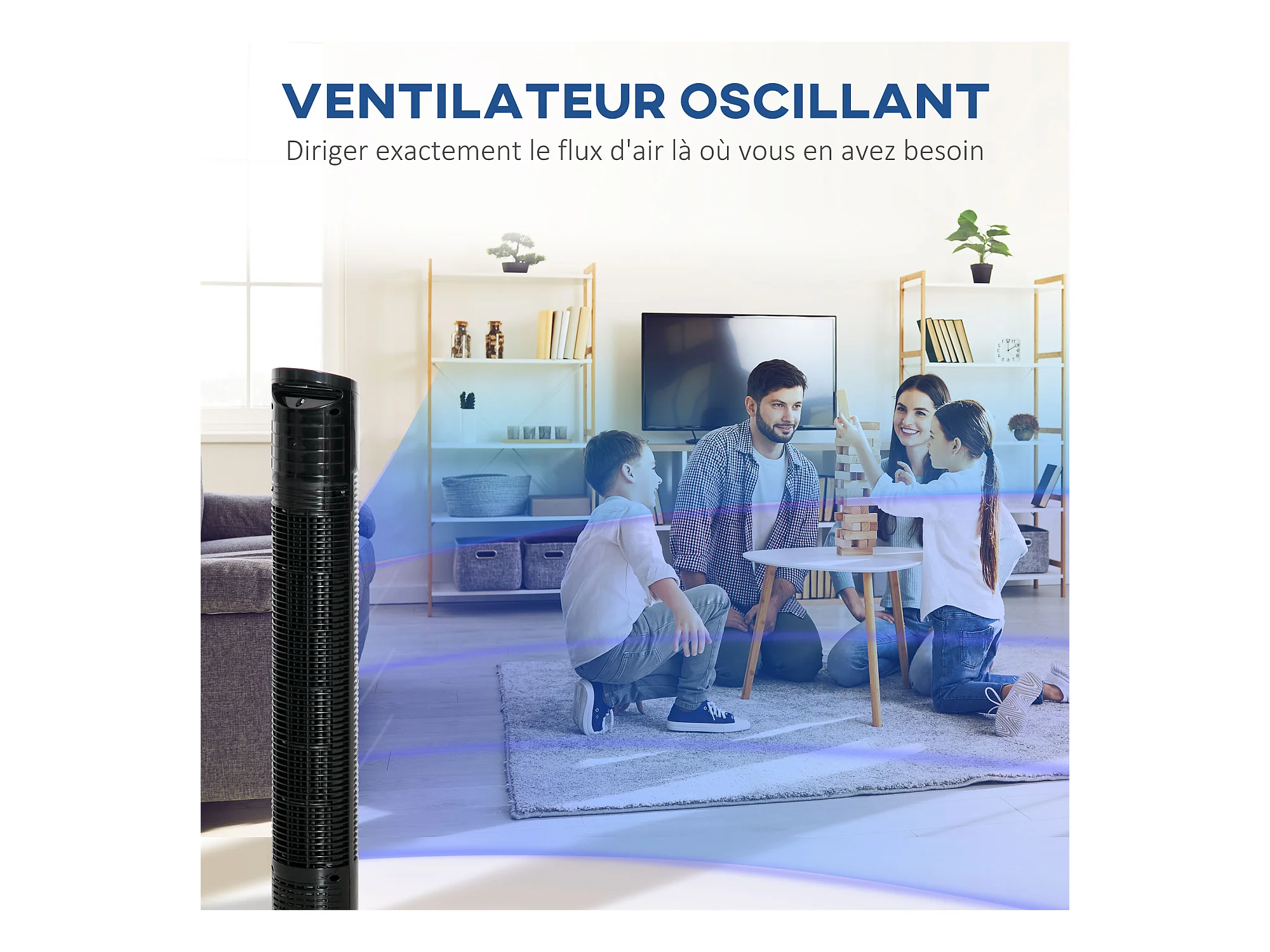 Ventilateur colonne tour oscillant silencieux 50W 3 vitesses Ø 20 x 78,5H cm noir