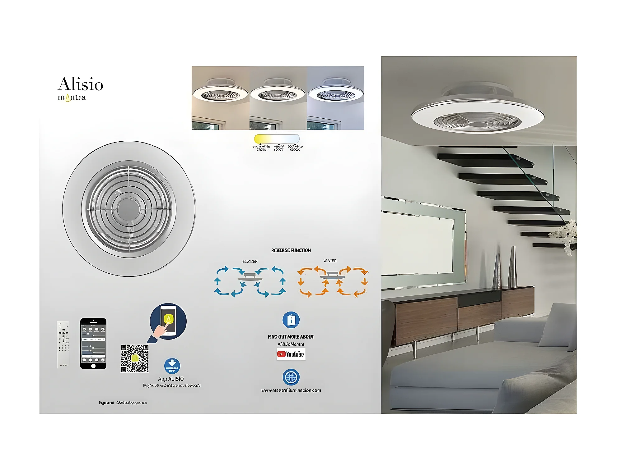 Ventilateur DC ALISIO blanc 63 cm led dimmable CCT réglable commande de distance