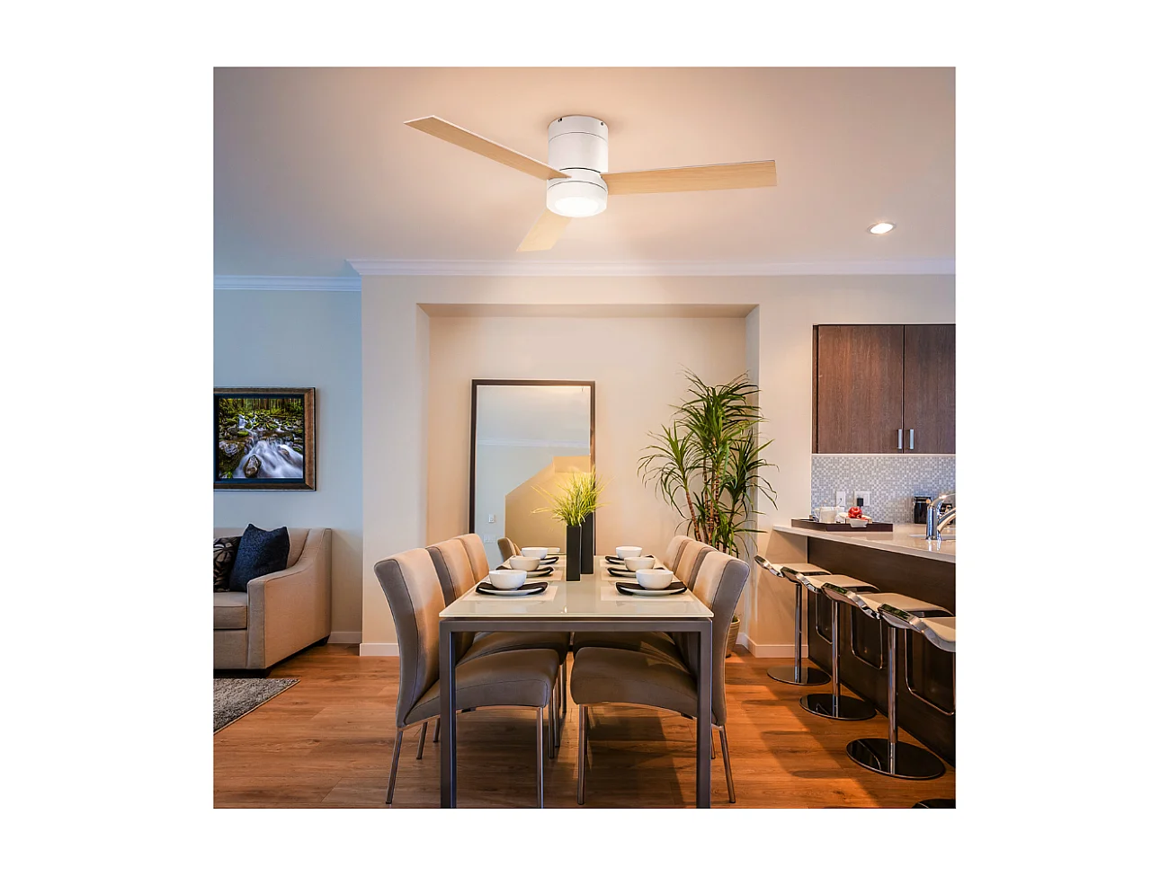 Ventilateur de plafond 2 en 1 avec lumière LED 3 vitesses silencieux télécommande diamètre 112cm naturel et blanc