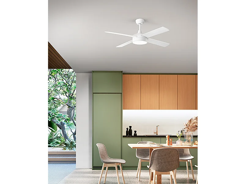 Ventilateur de Plafond avec Lumière Perenz 7181 B CT Blanc d. 132 cm, 4 Pales, 6 Vitesses, Moteur DC 40W, Silencieux